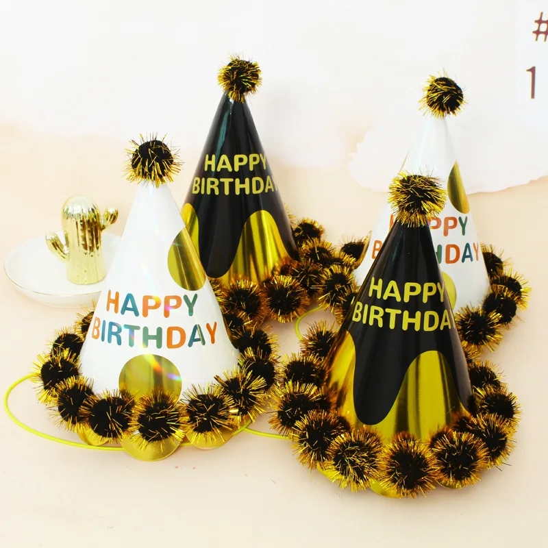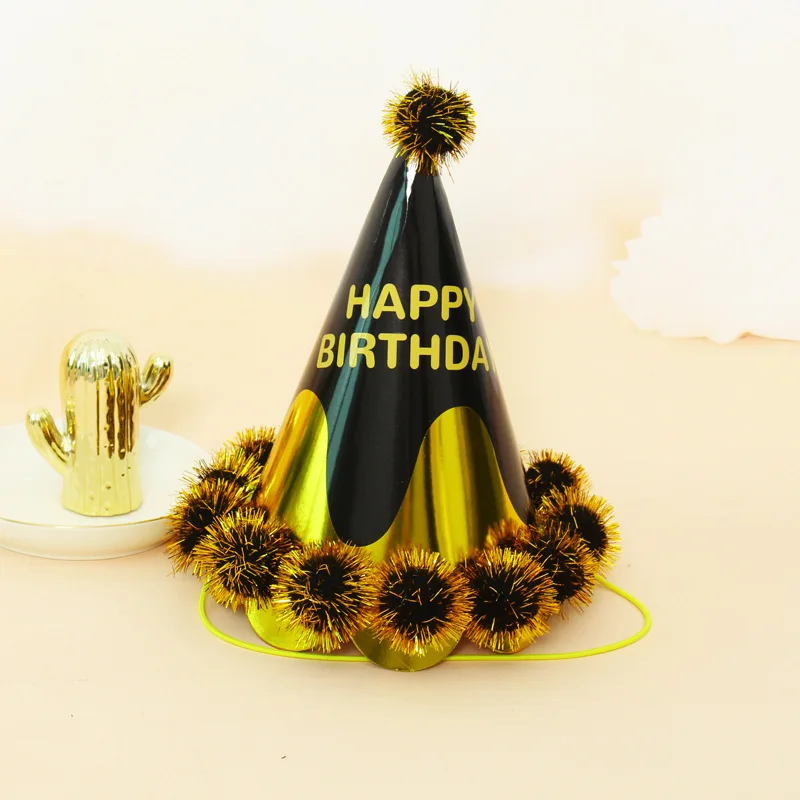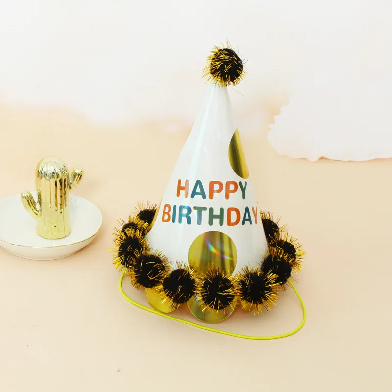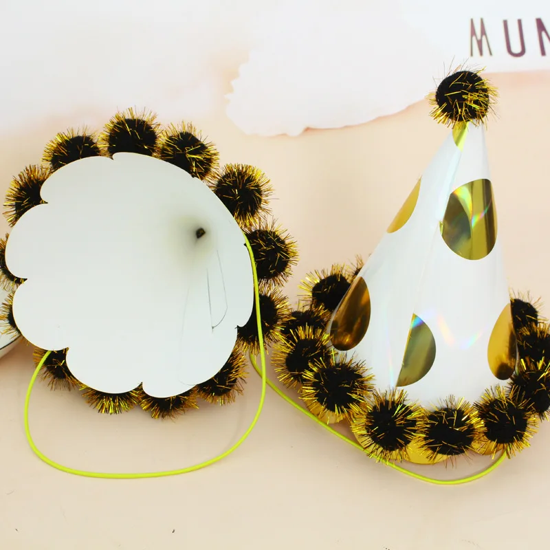 21 cm Party Birthday Cap Party Creative Dress Up Lace Gold Gold Wire Pompom Paper Ball Cap