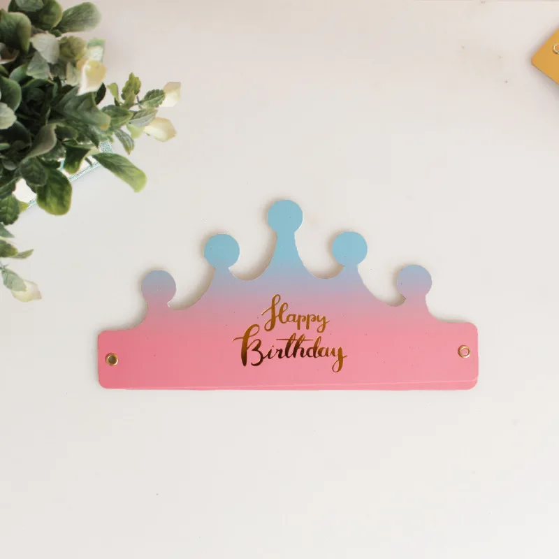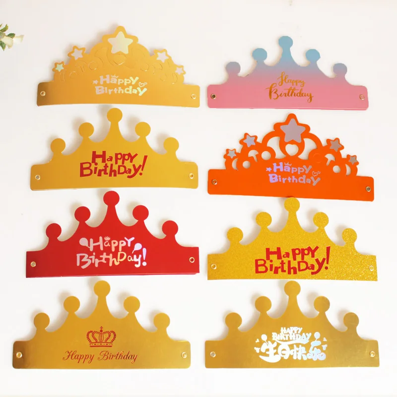 Folded Thickened Birthday Hat Baby Kids Adult Cake Shop Hat Headband Decoration Cardboard Crown Hat