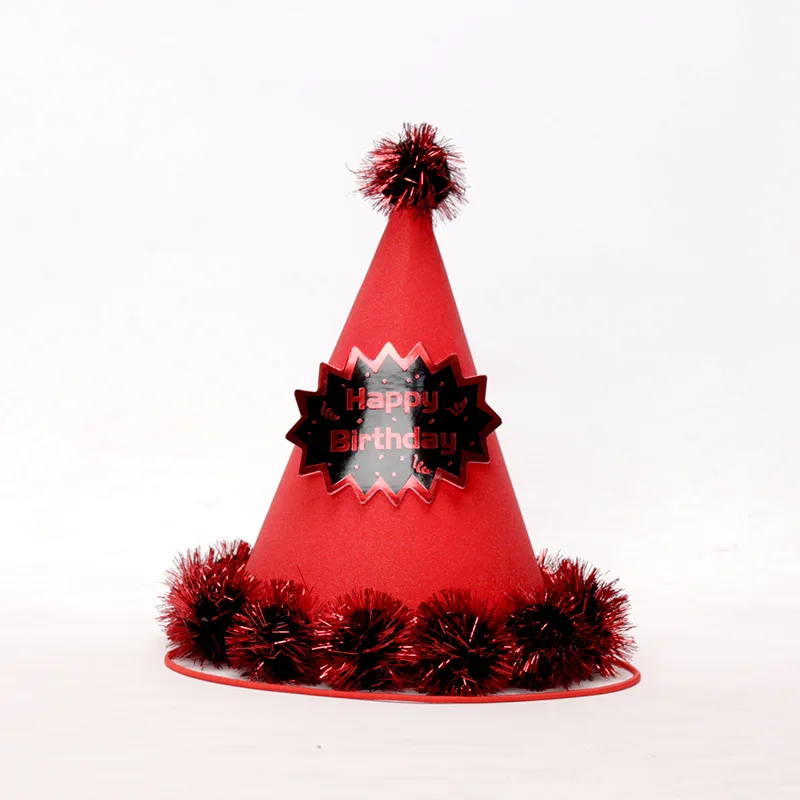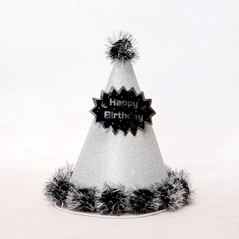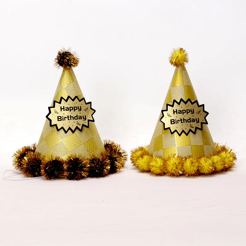 18.5 cm Party Birthday Hat Children's Adult Party Supplies Pom-pom Gold Silk First Birthday Paper Ball Cap