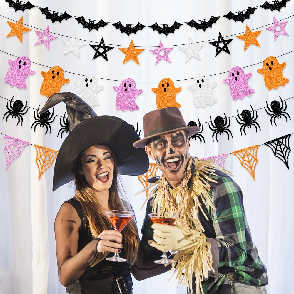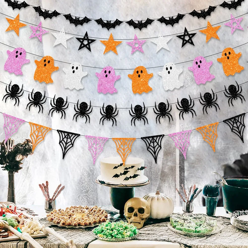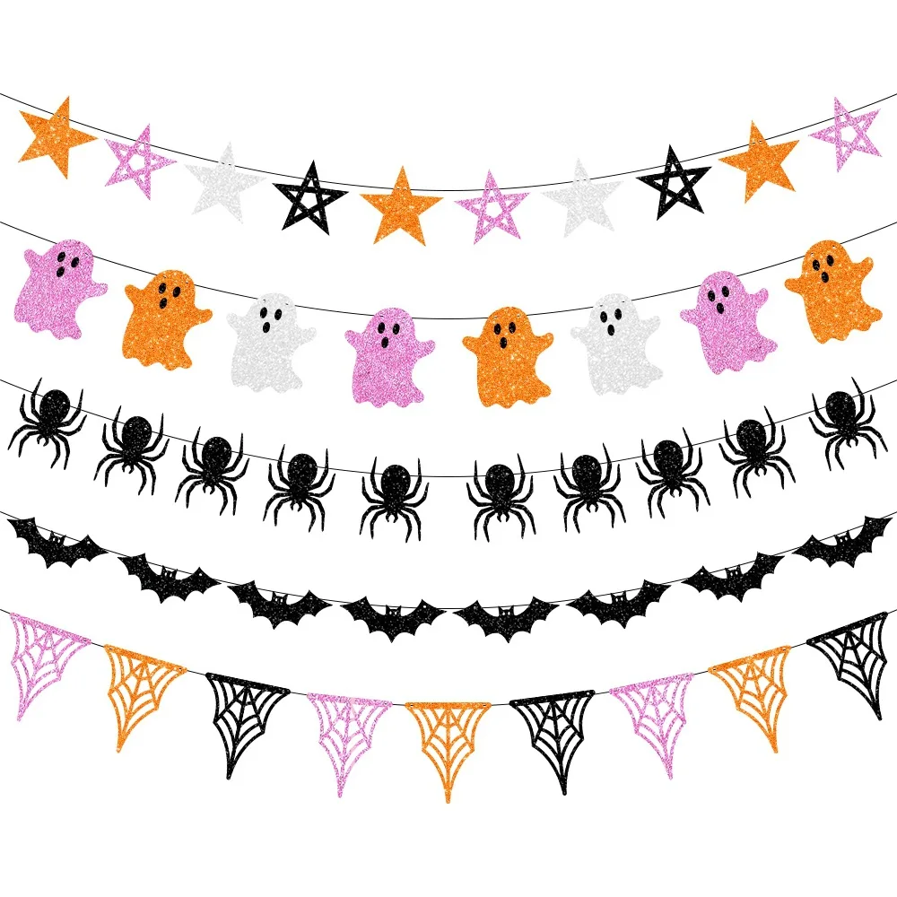 Halloween Party Decoration Flag Pull Banner Halloween Atmosphere Decoration Ghost Spider Latte Art Bat Pull Flag
