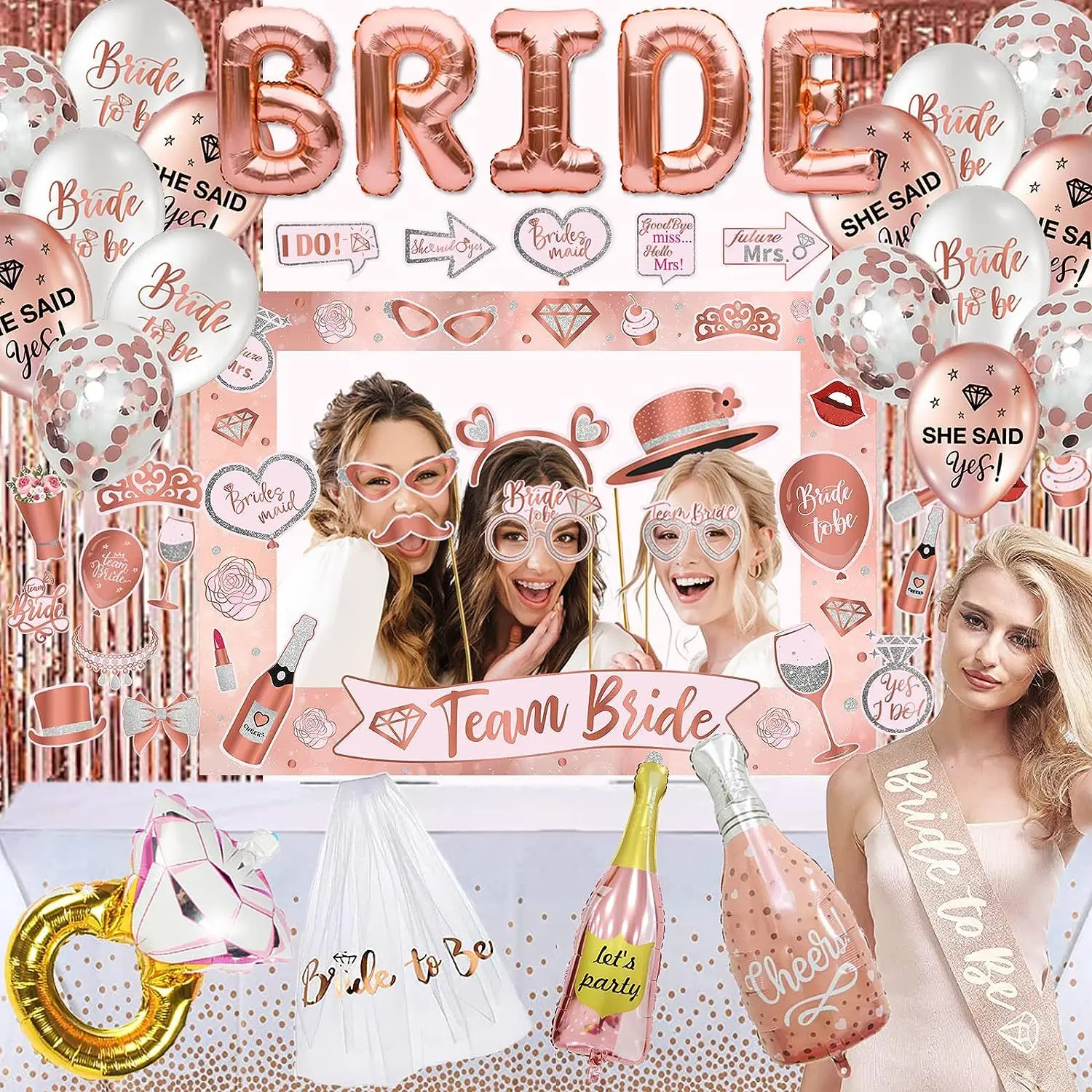 bride bachelorette party balloon set bridal diamond heart party decoration balloon photo booth