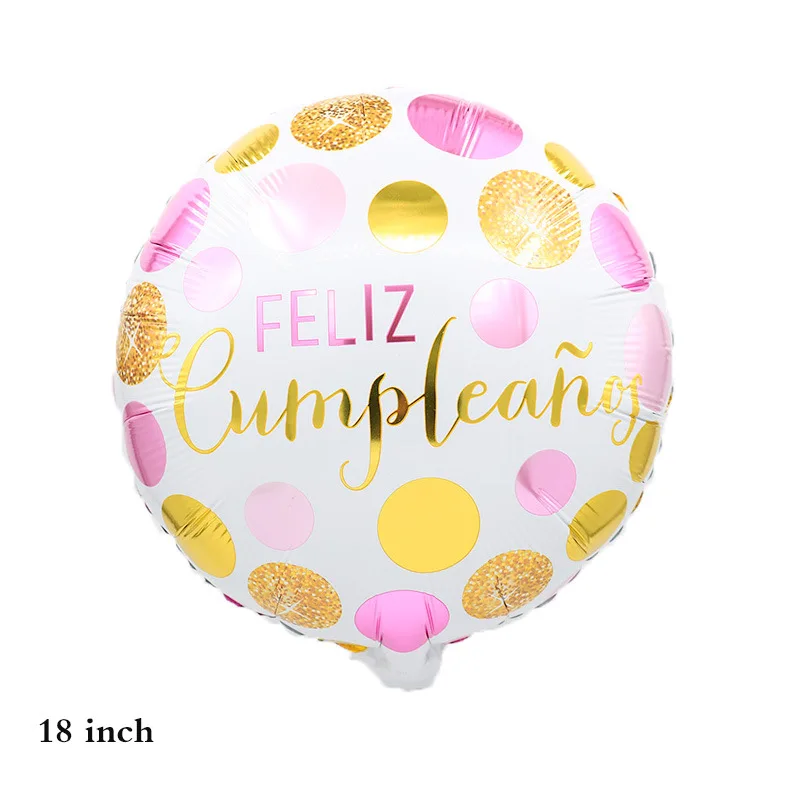 18 Inch Spanish Feliz Cumpleanos /Dia Happy Birthday Pattern Globos Party Decoration Foil Balloons