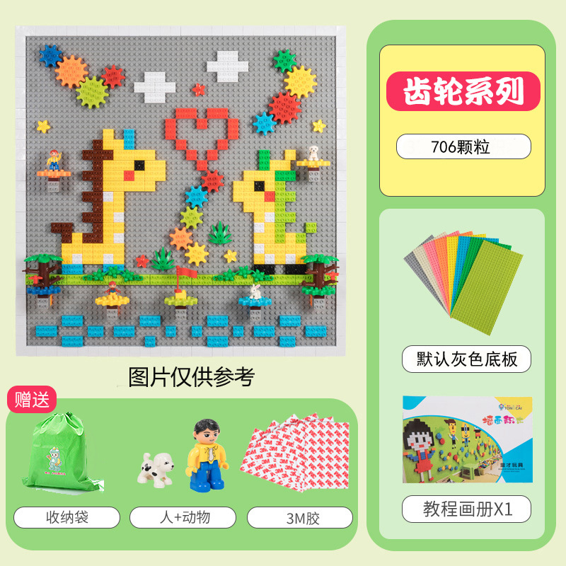 706 large particles plus one flat greige base plate plus gear plus glue with frame
