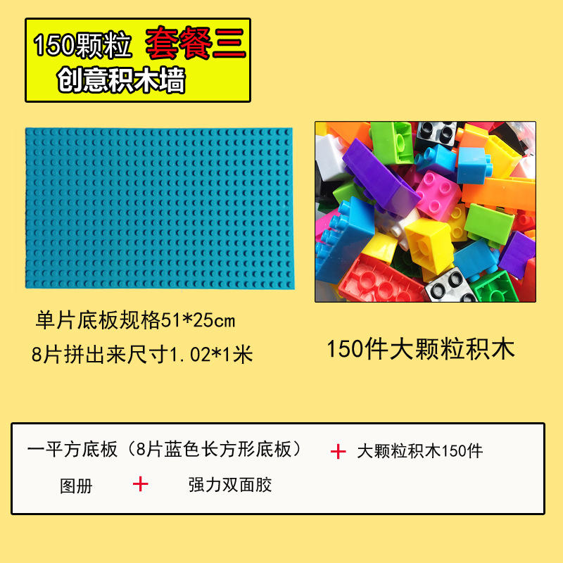 one square light green floor plus 150 large particle building blocks with glue