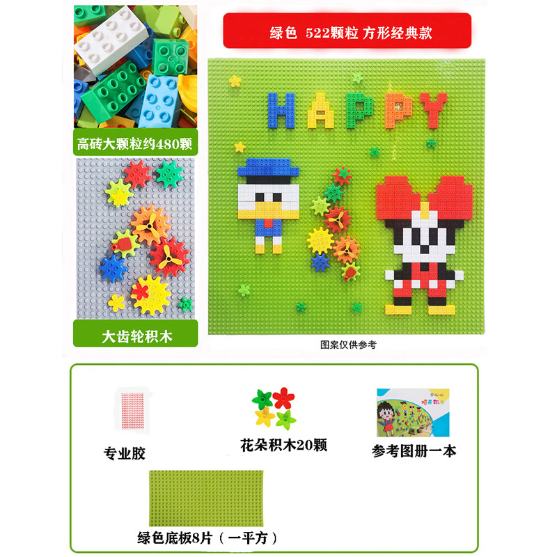 522 large particles plus one square meter light green base plate plus glue with gear