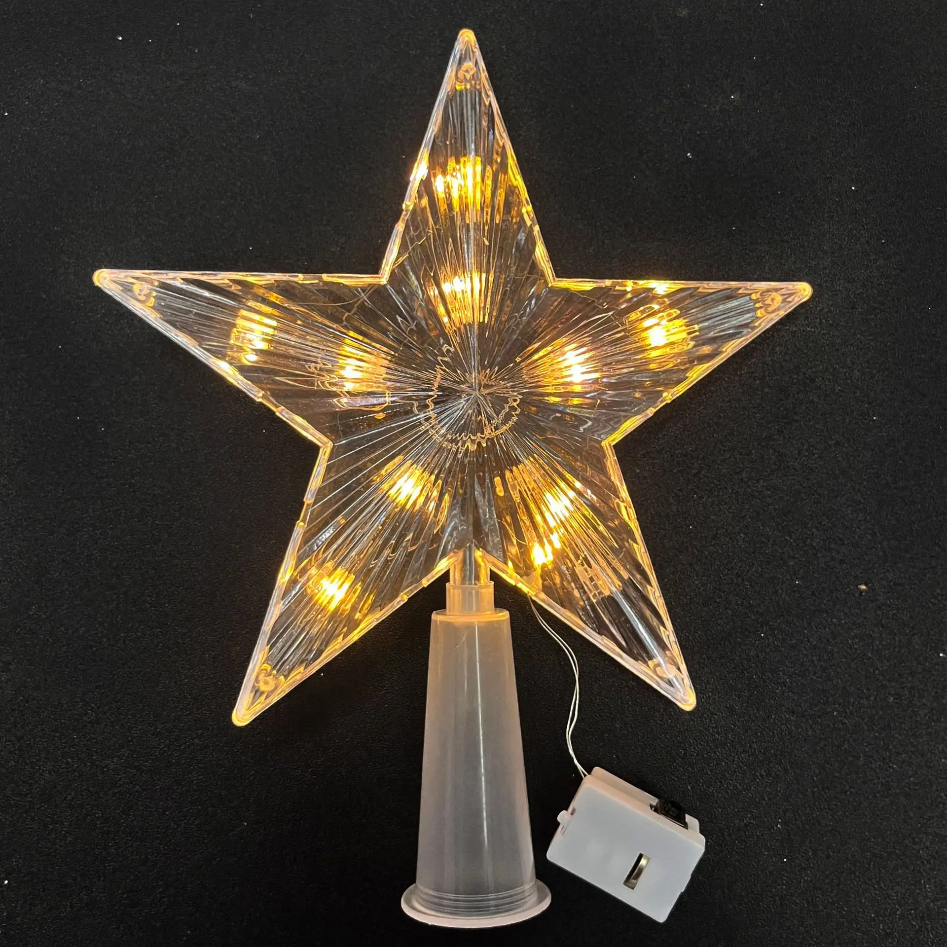 Christmas New Luminous Tree Top Star Christmas Tree Decoration Supplies Christmas Transparent with Lights Pentagram Star