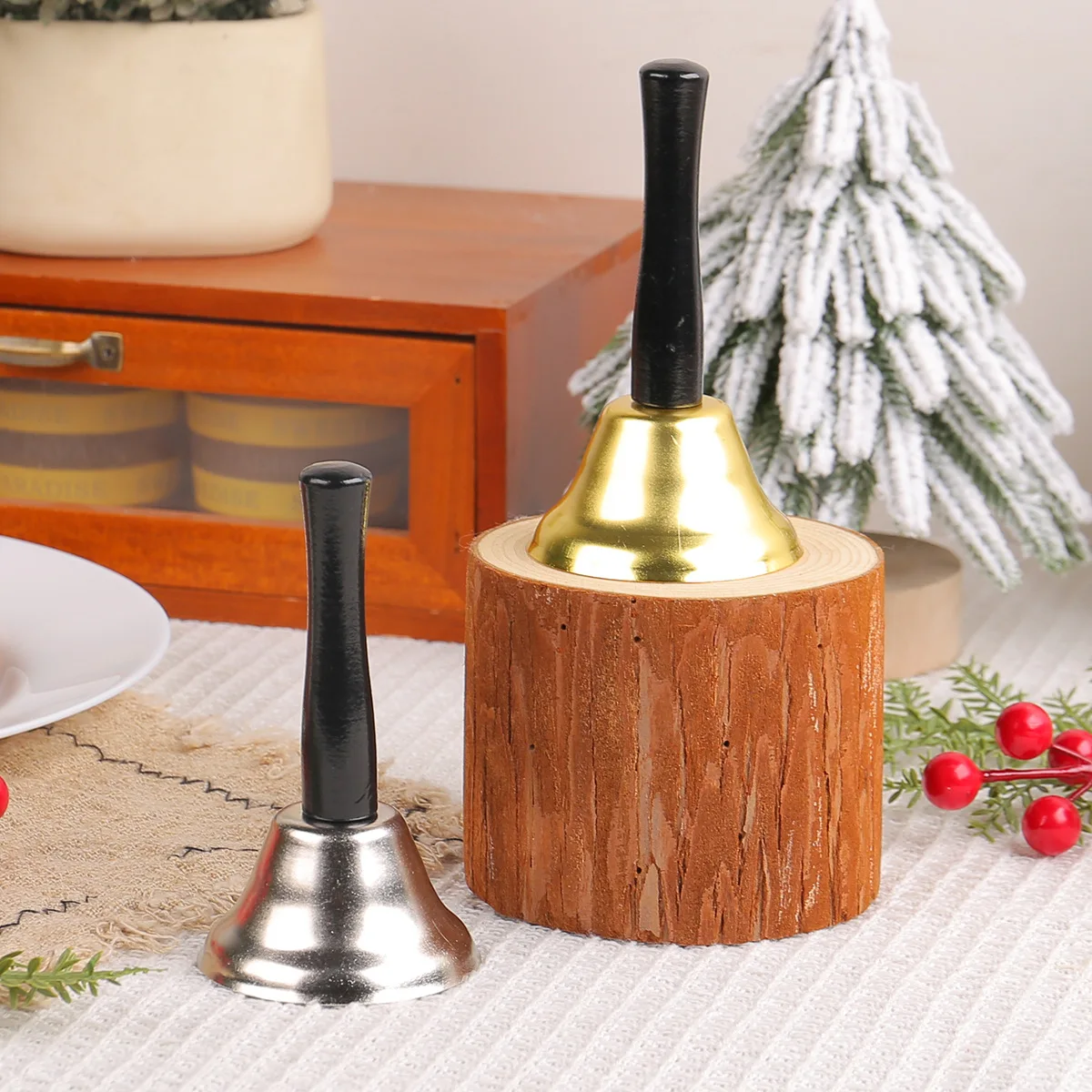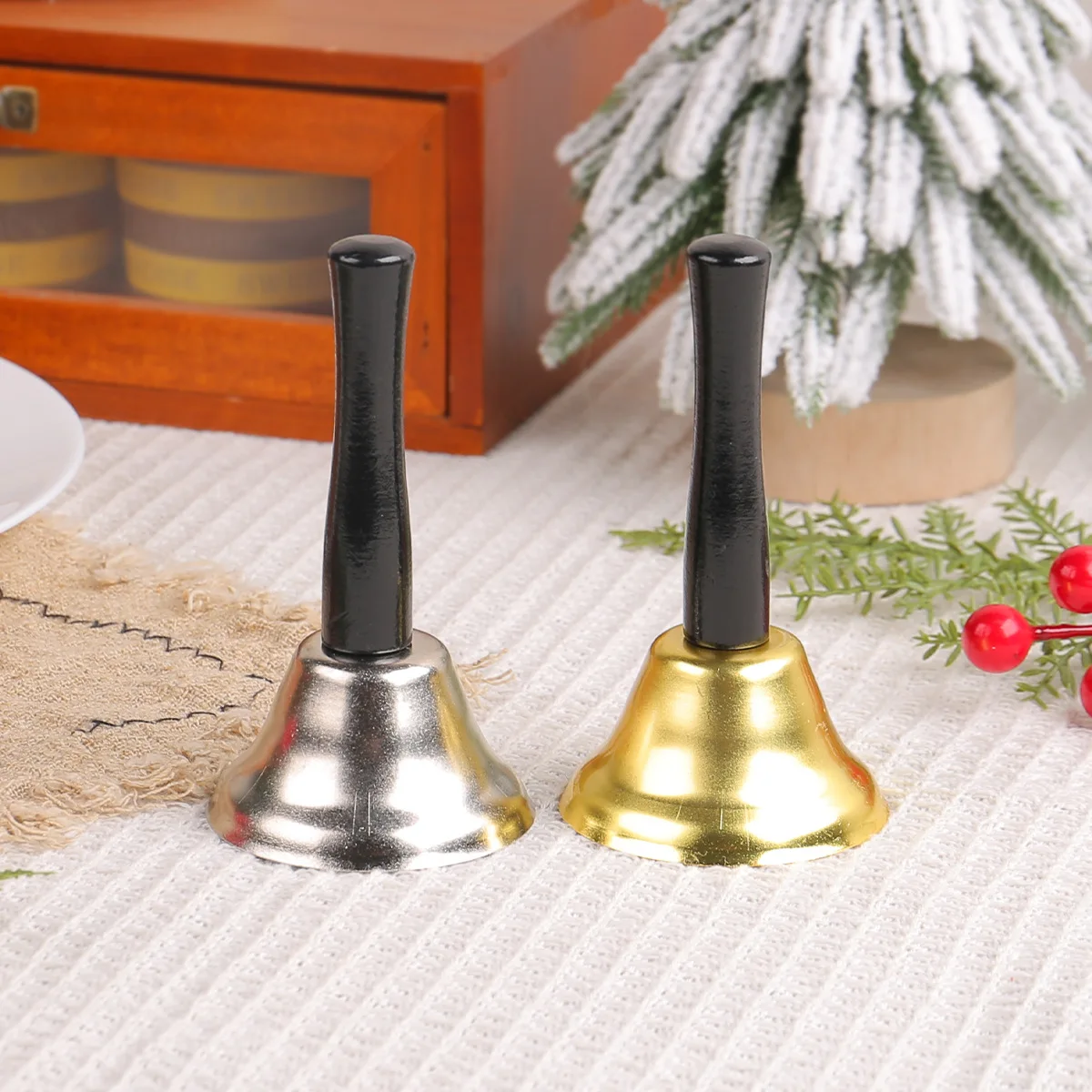 Christmas Claus Wooden Handle Hand Rattle Gold and Silver Christmas Bell Decoration Supplies Class Order Summons Bell