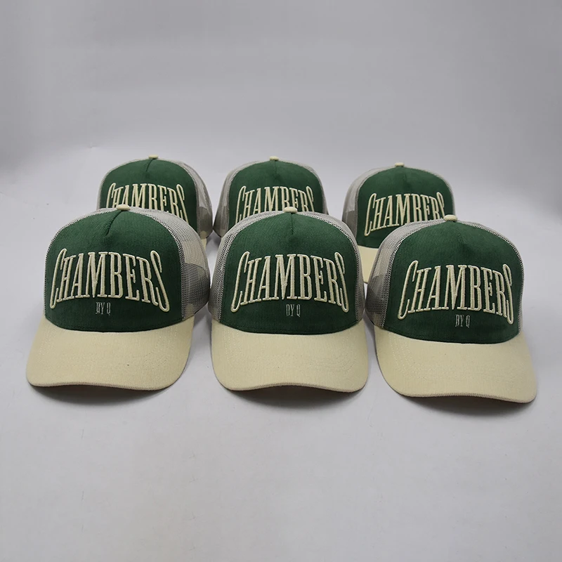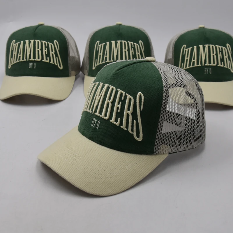 1.Product Name | Summer embroidered structured two tone 5 panel mesh embroidery custom luxury trucker hat corduroy | ||