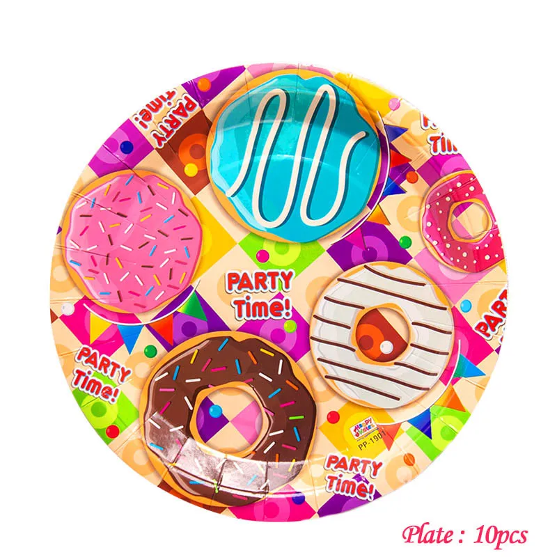 Macaron colored donut theme birthday party tableware set Party decoration