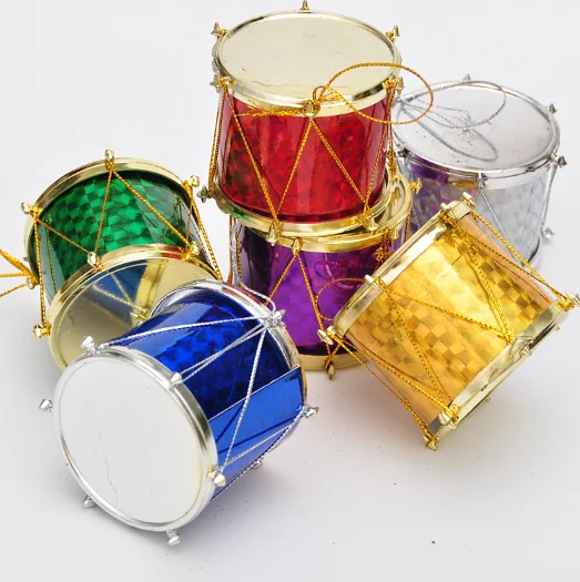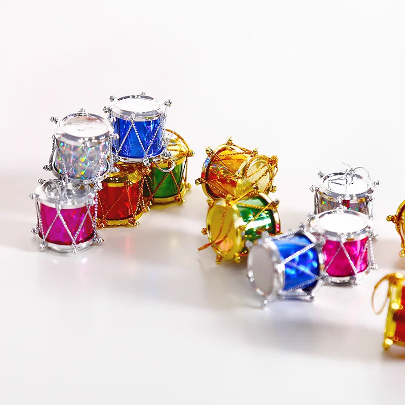 Christmas Tree Ornaments 2.5cm Laser Drum 12pcs Christmas Tree Pendant Christmas Drum Gift Pack Supplies