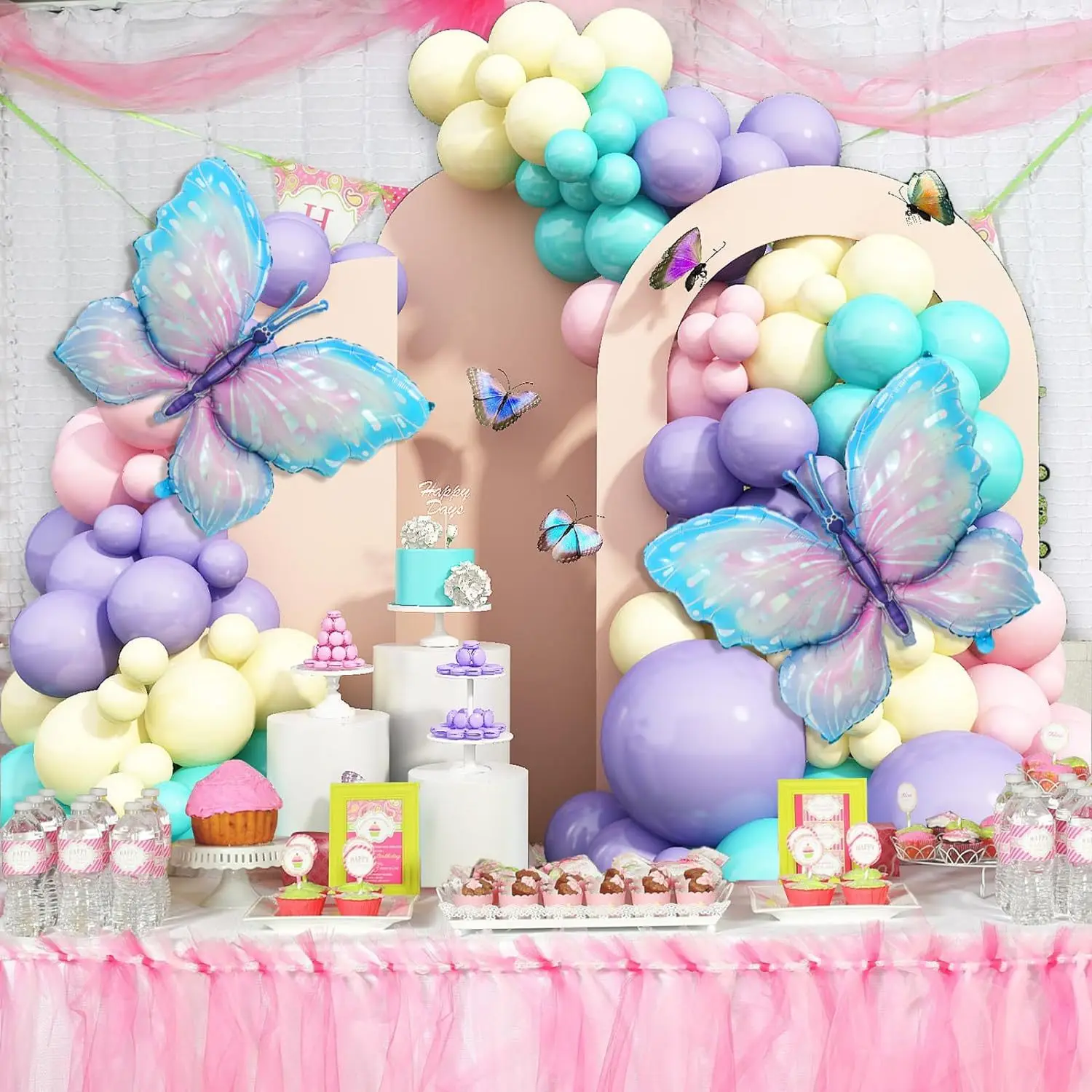 Hot butterfly theme balloon chain garland arch set girls children birthday party decoration supplies
