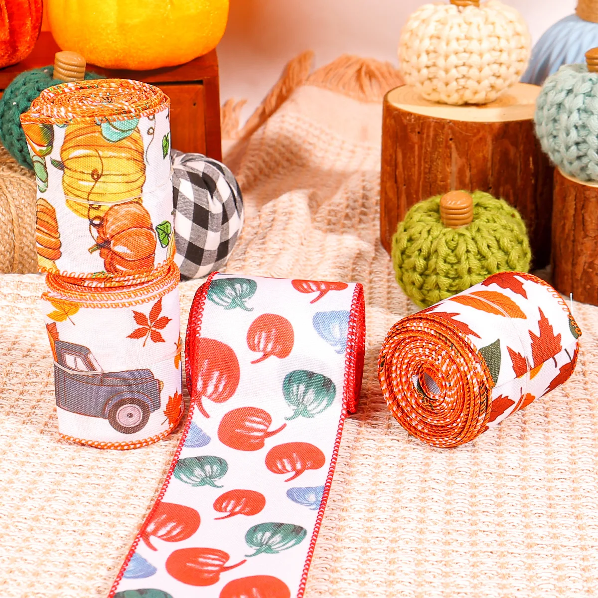 Autumn Harvest Edging Webbing Harvest Festival Decorative Ribbon Pumpkin Maple Ribbon Thanksgiving Day Gift Wrapping Tape