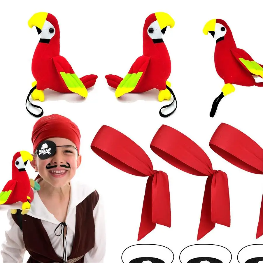 Pirate Parrot Props Hanger Turban Eye Patch Character Party Caribbean Play Pirate Hat Flannel Halloween