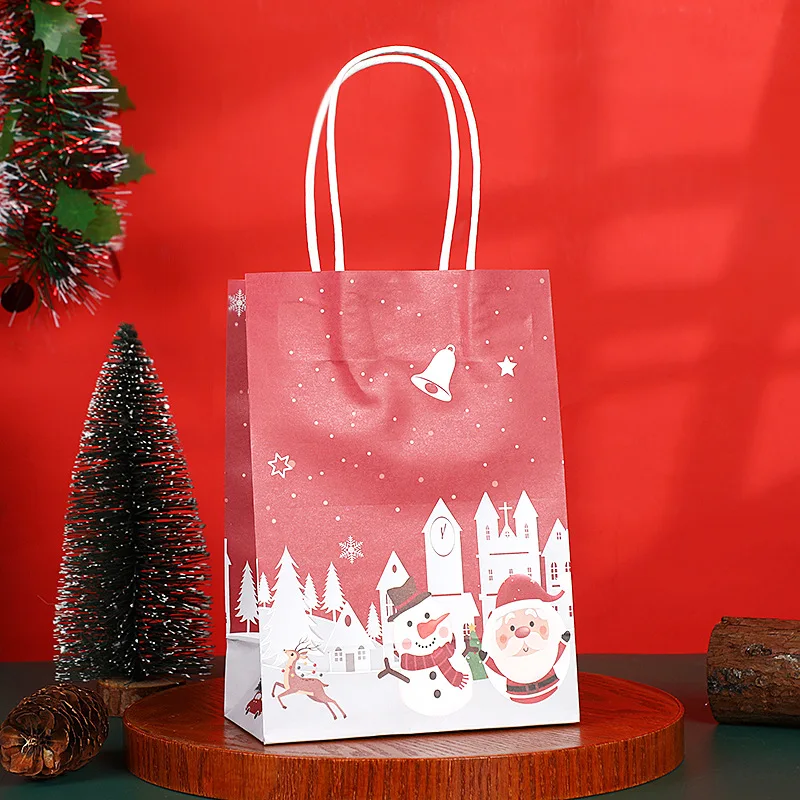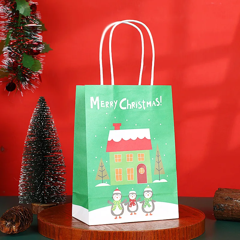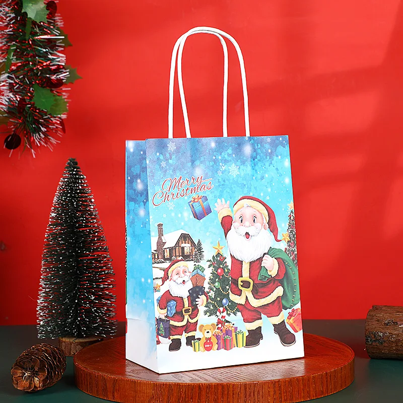 2024 Party baking Christmas themed cartoon kraft paper bag apple Christmas Eve gift tote bags