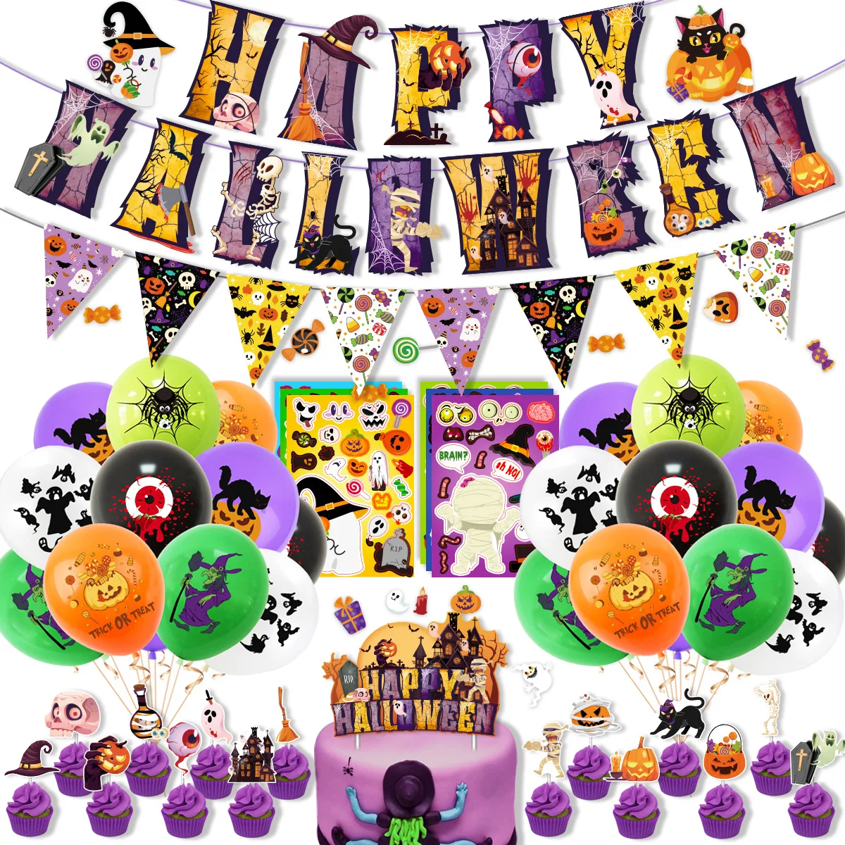 New Halloween party decoration set Christmas Eve party flag cake card balloon set supplies