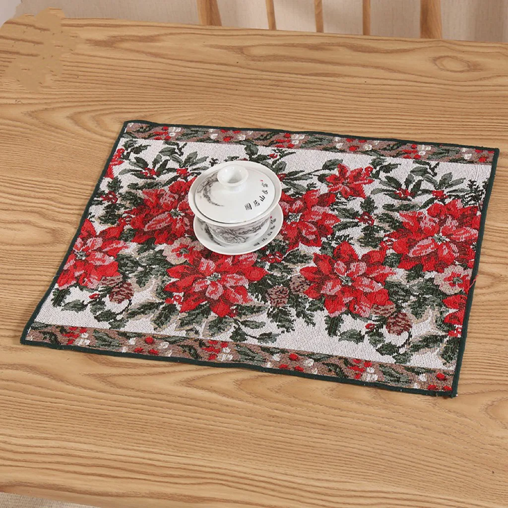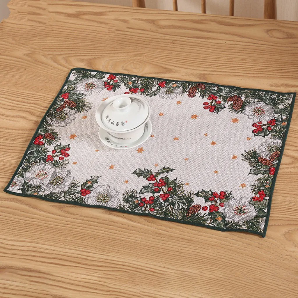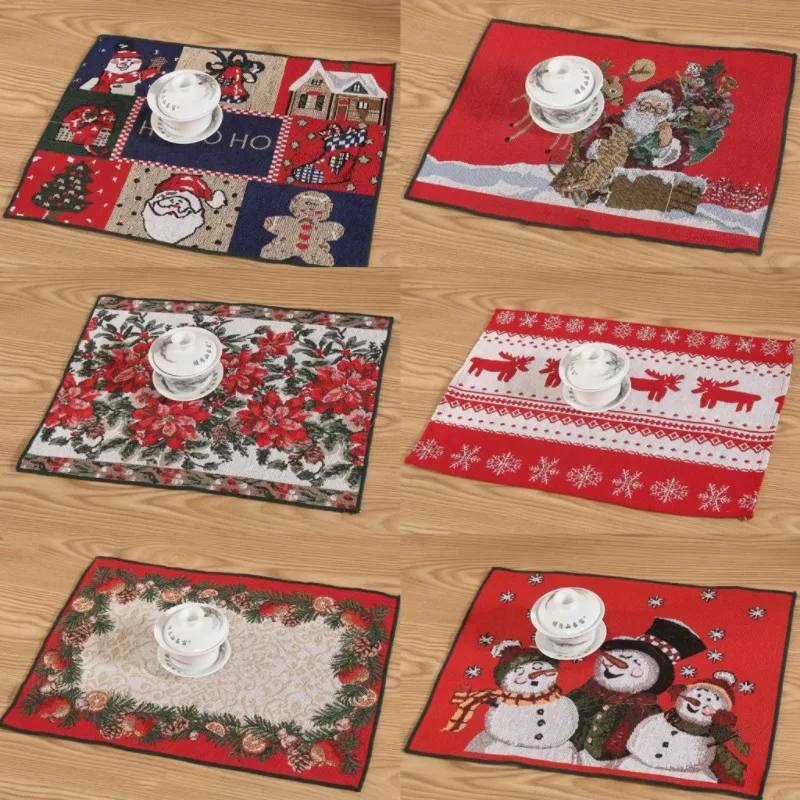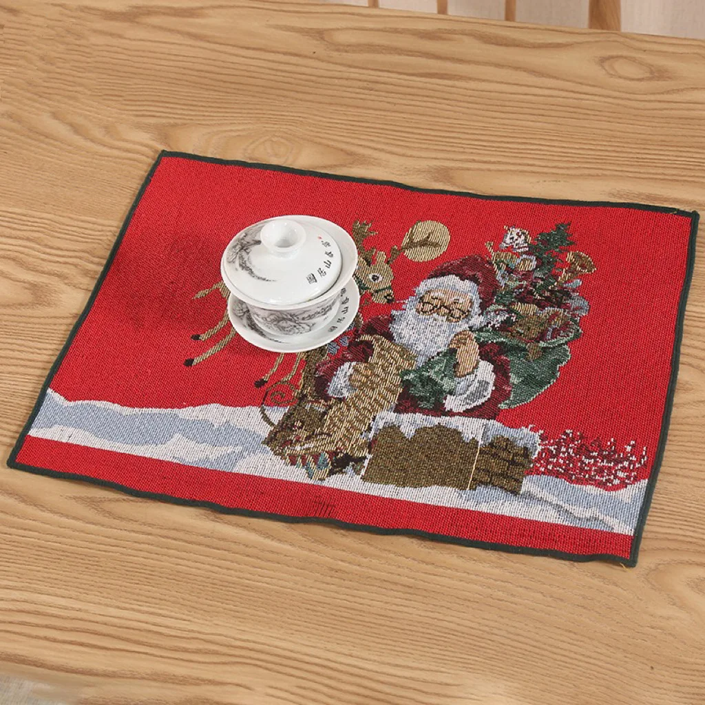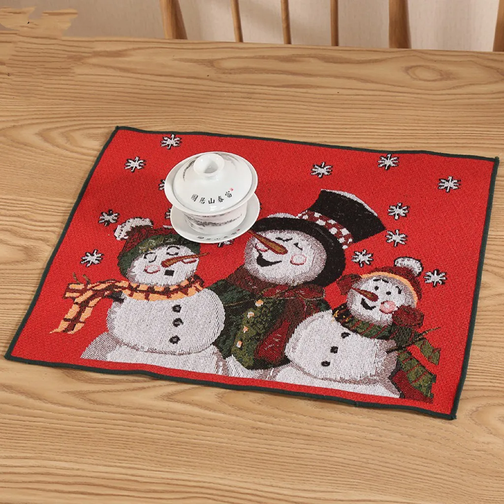Festival Linen Napkin Mat Exquisite Snowman Pattern Embroidery Christmas Placemat Western Food Bowl Polyester Placemat