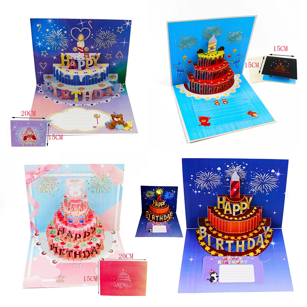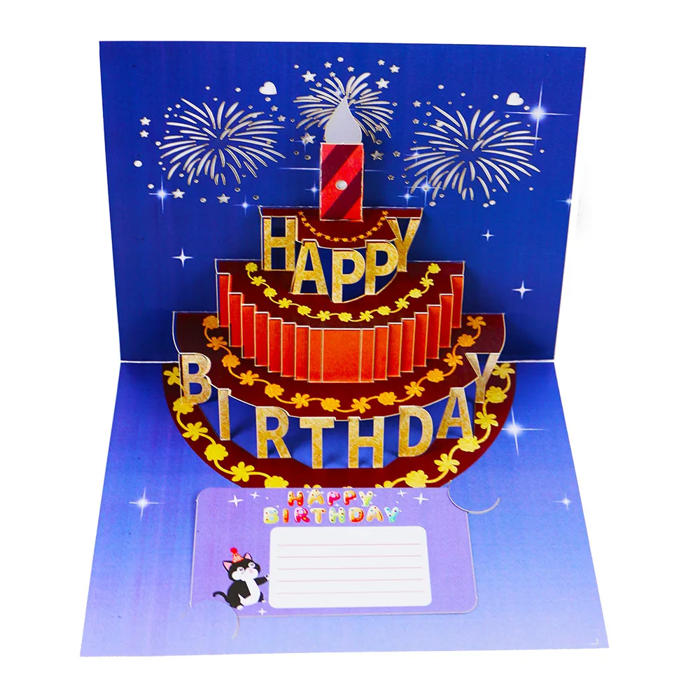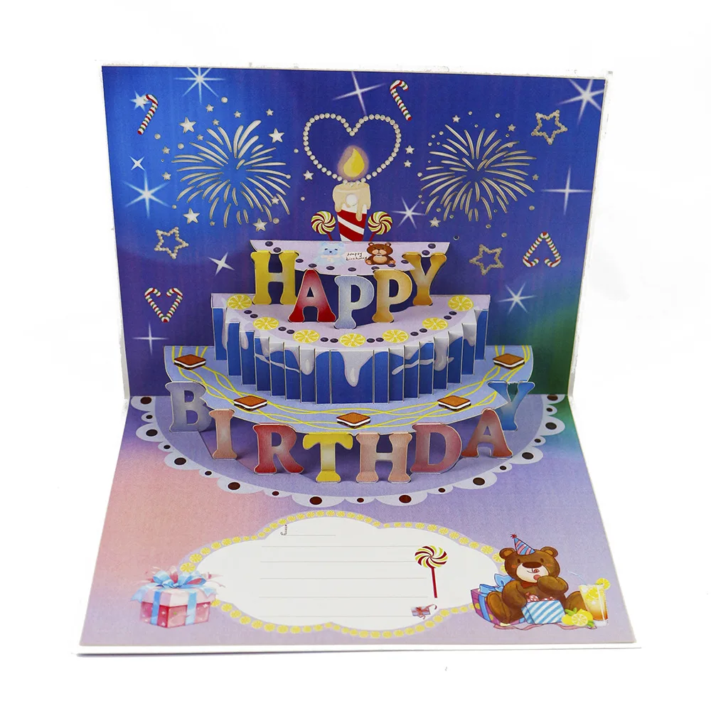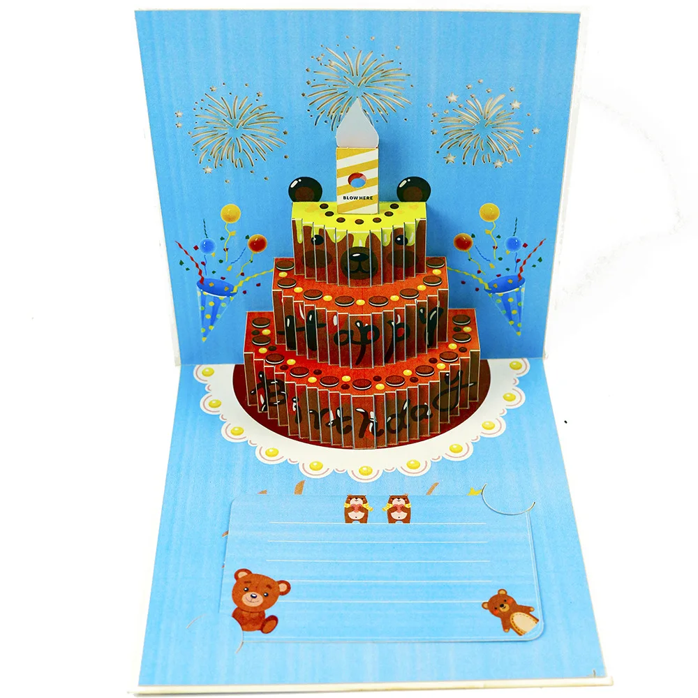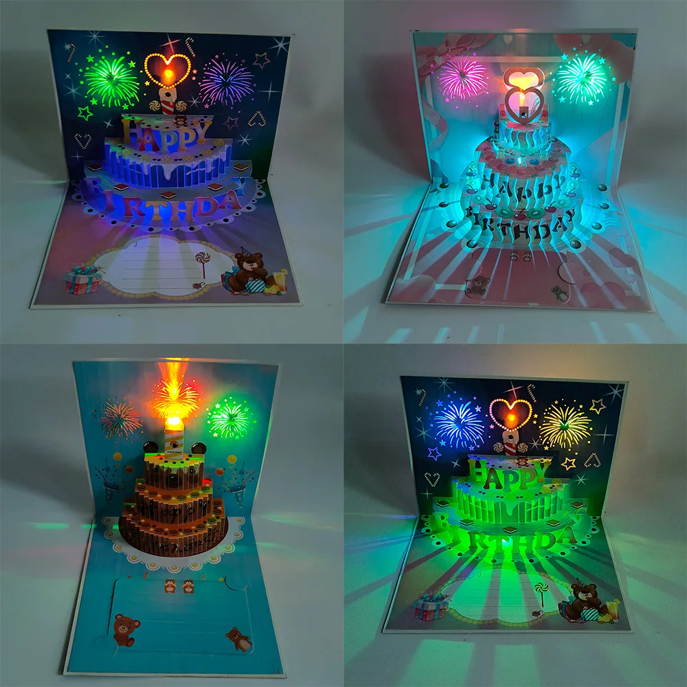 Birthday Cake Love Print Color Colorful Music Light 3D Stereo Greeting Card Blowing Light Bloom Blessing Gift