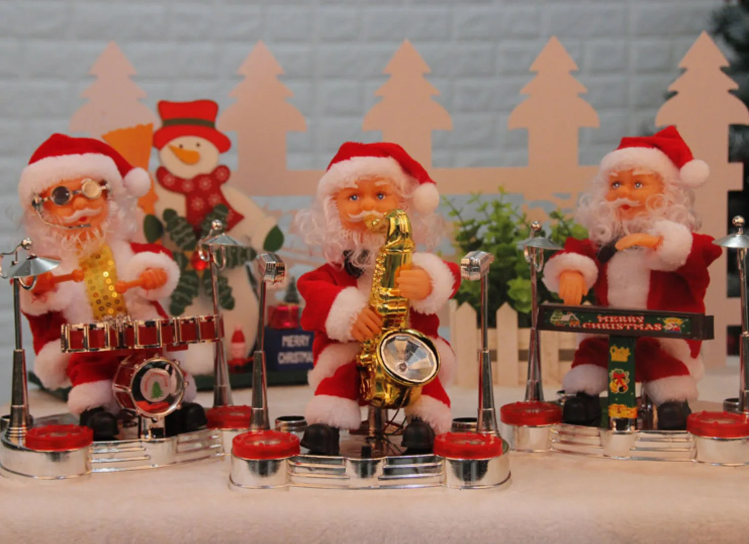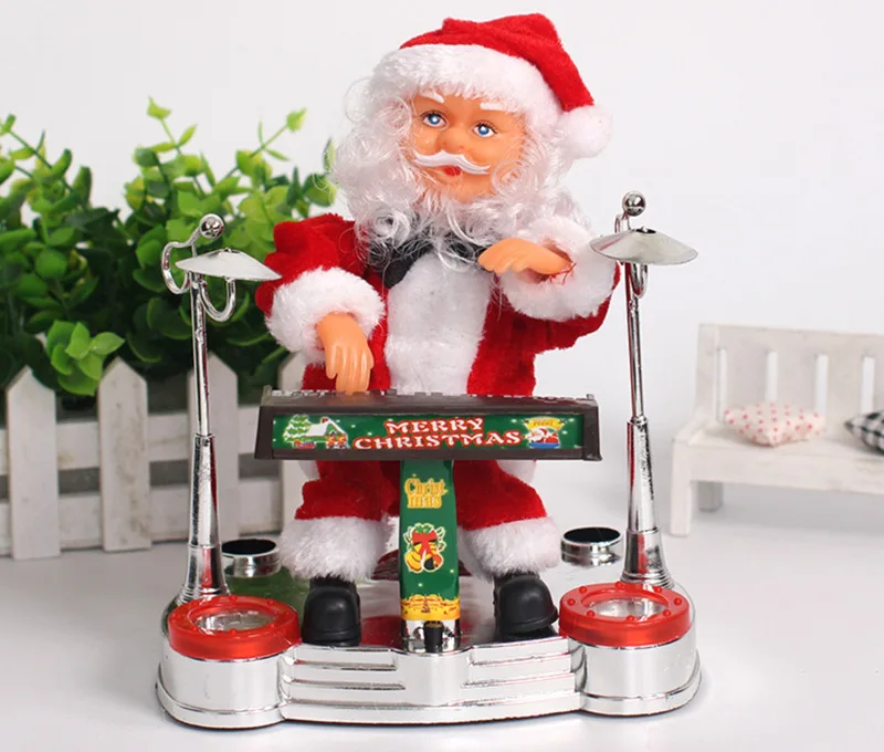 Hot Sale Playing Piano Santa Claus Playing Saxophone Drums Christmas Decoration Plush Electric Santa Claus Toy