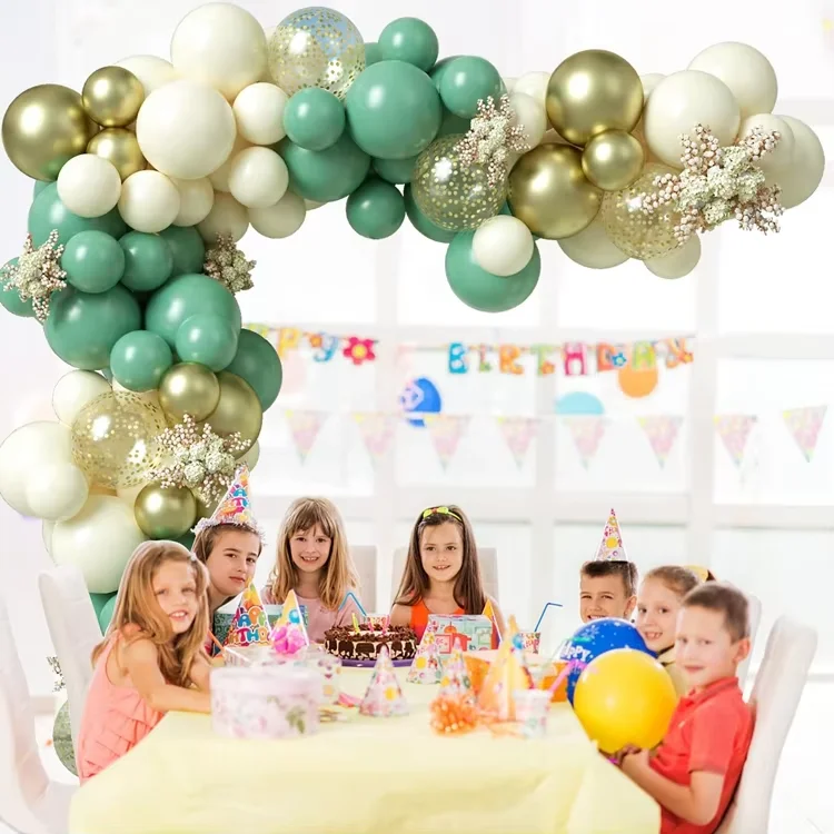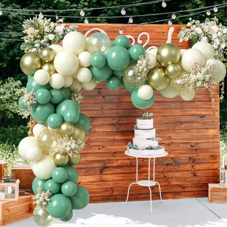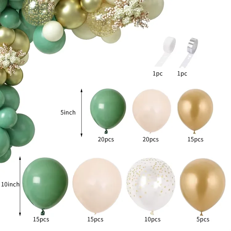 102PCS Retro Bean Green Balloon Garland Kit Sage Green White Metallic Gold Latex Balloons for Birthday Party Decoration