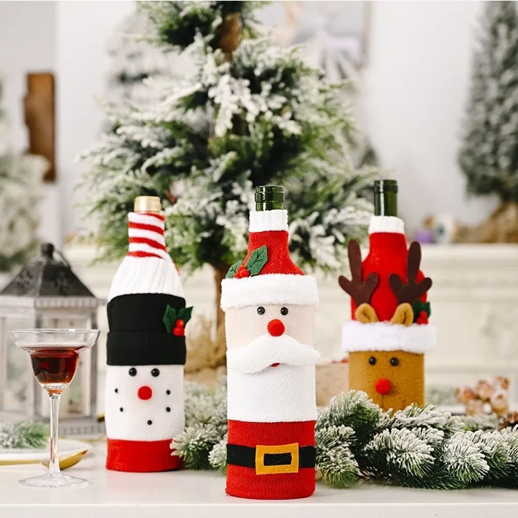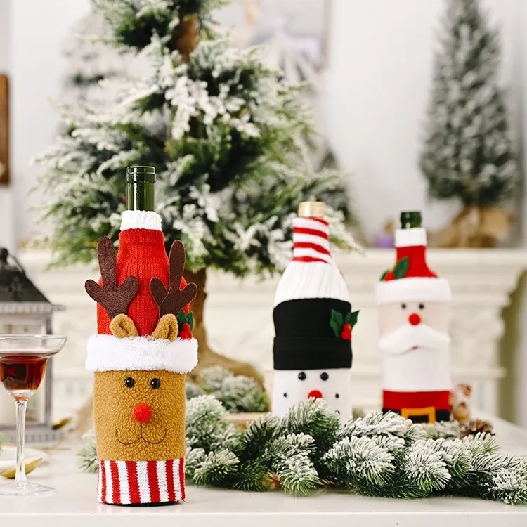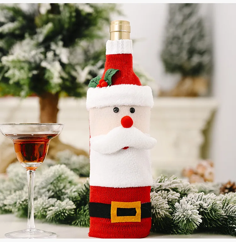Christmas Decoration Knitted Flannel Cartoon Wine Bottle Set Creative Cartoon Old Man Wine Bottle Set Elk Wine Bottle Bag