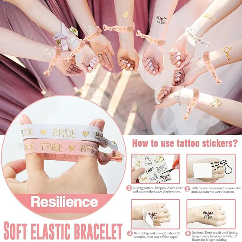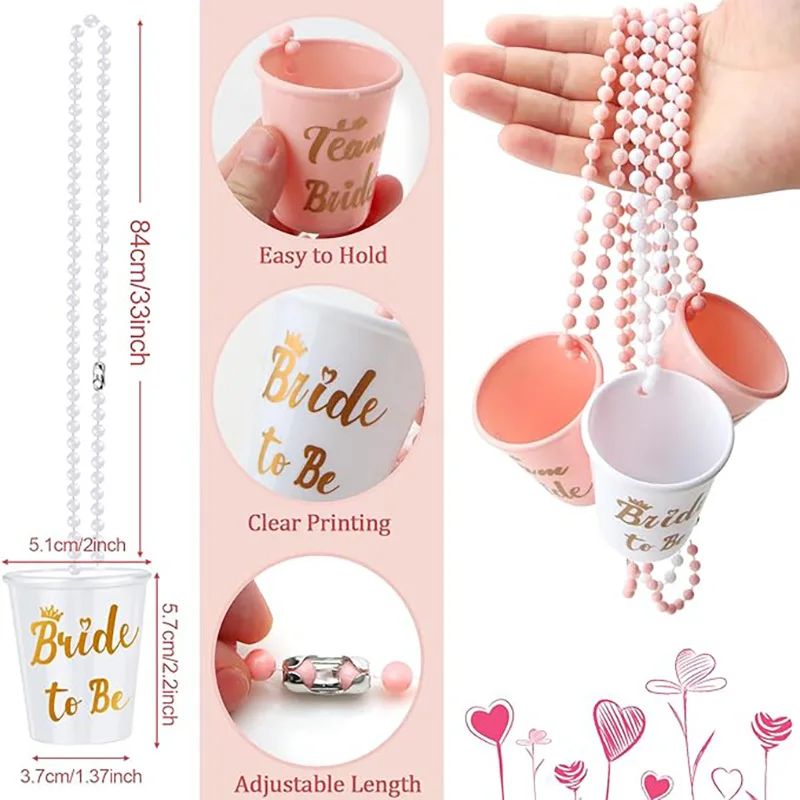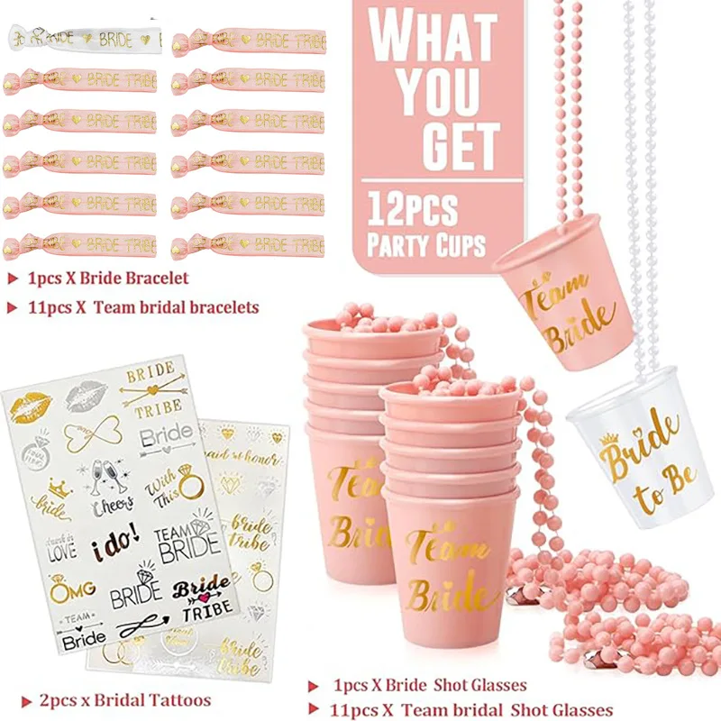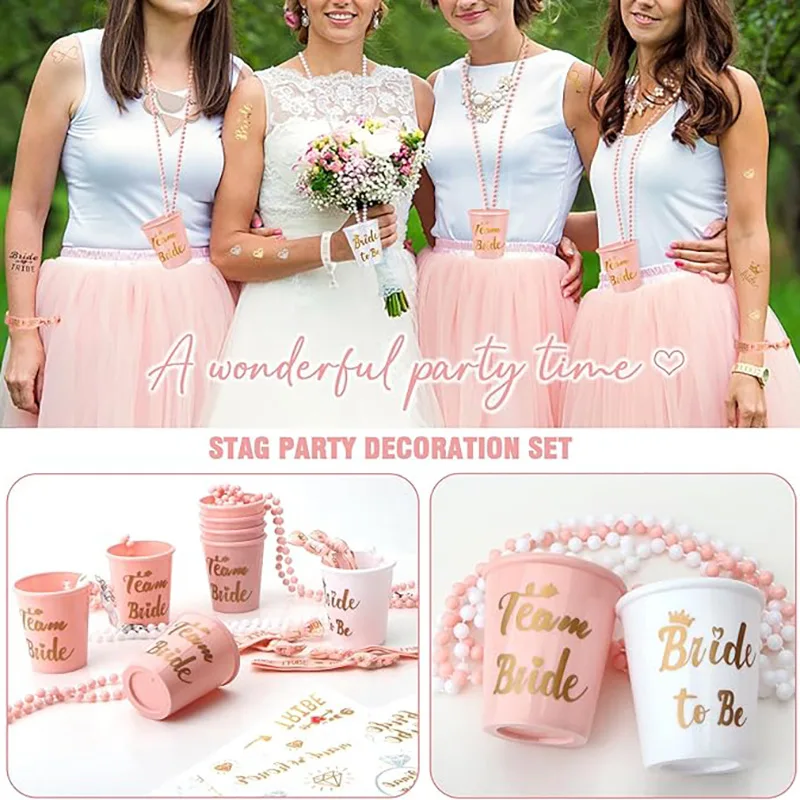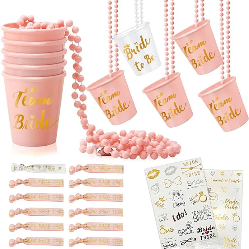 Bride to Be Bead Chain Cup Set Bachelorette Party Bride Bridesmaid Champagne Color Wrist with Tattoo Sticker
