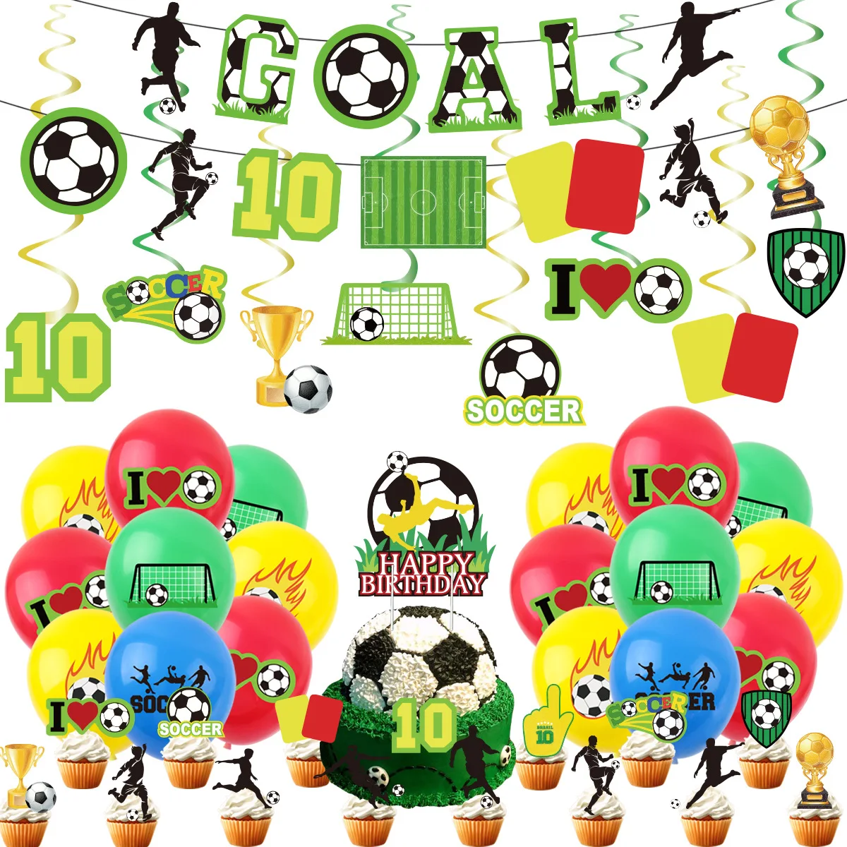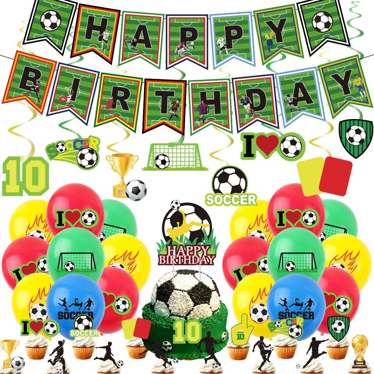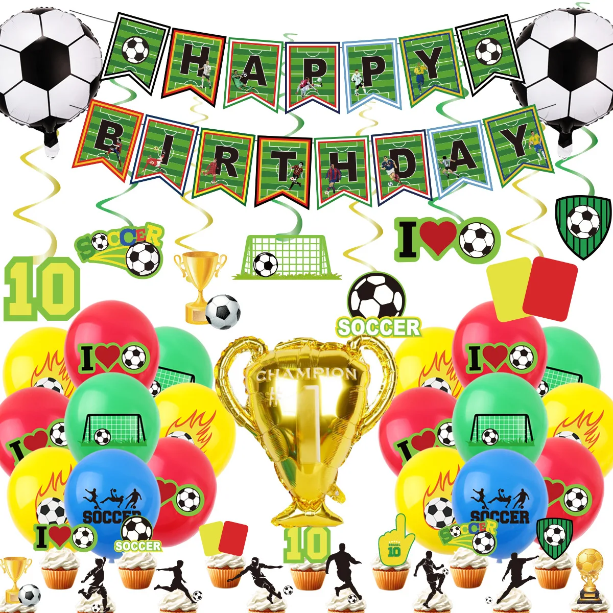 2024 New Soccer Party Banner Decoration Soccer Party Spiral Balloon Flag Pull Dress Up