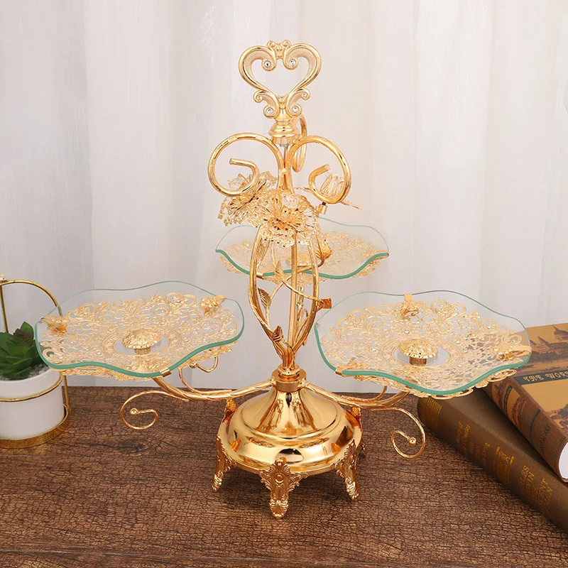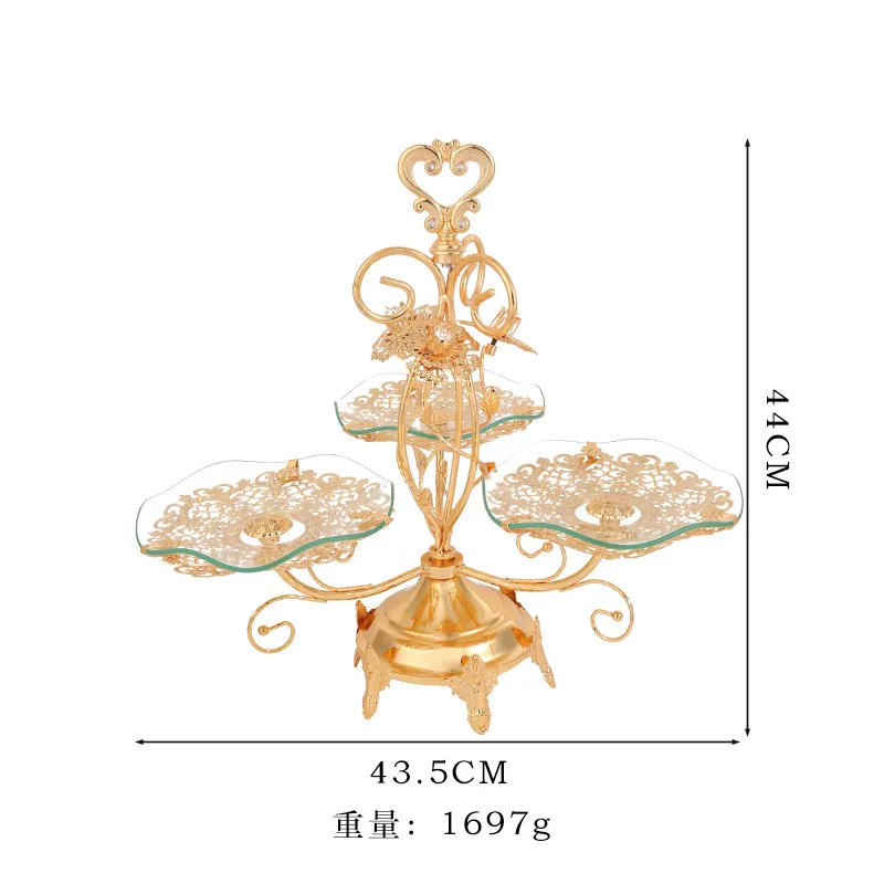 New European style gold three-head lace fruit basket fruit tray family living room decoration