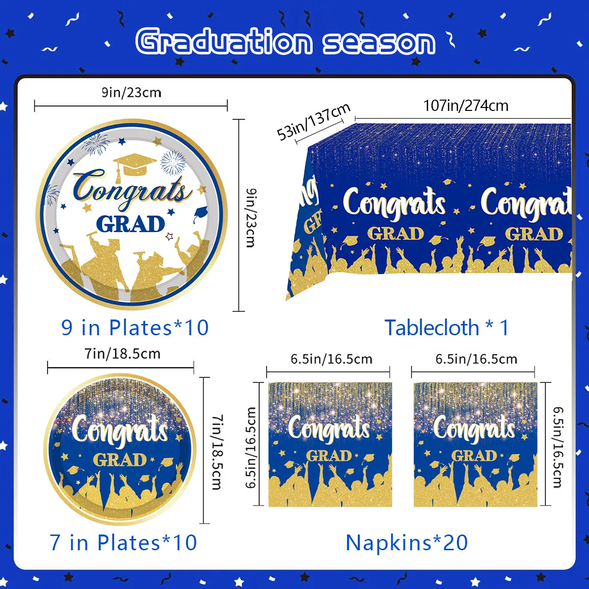 Multicolor Congiats GRAD Graduation Season Black Gold Blue Graduation Ceremony Theme Party Tableware Paper Towel Ornaments