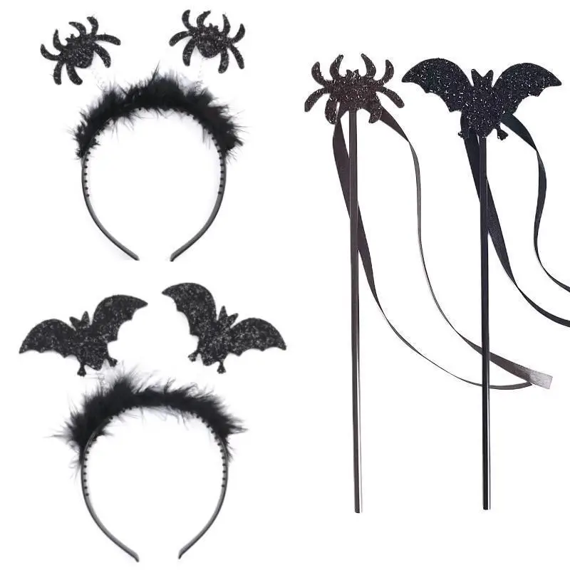 Halloween Bat Magic Wand Set Spider Headband Party Dress Up Props Cross Border Kids Holiday Wand Wholesale