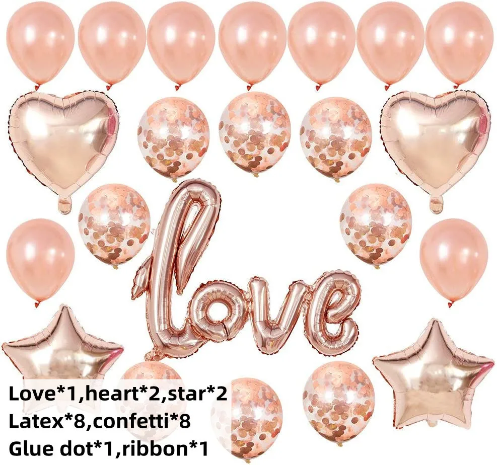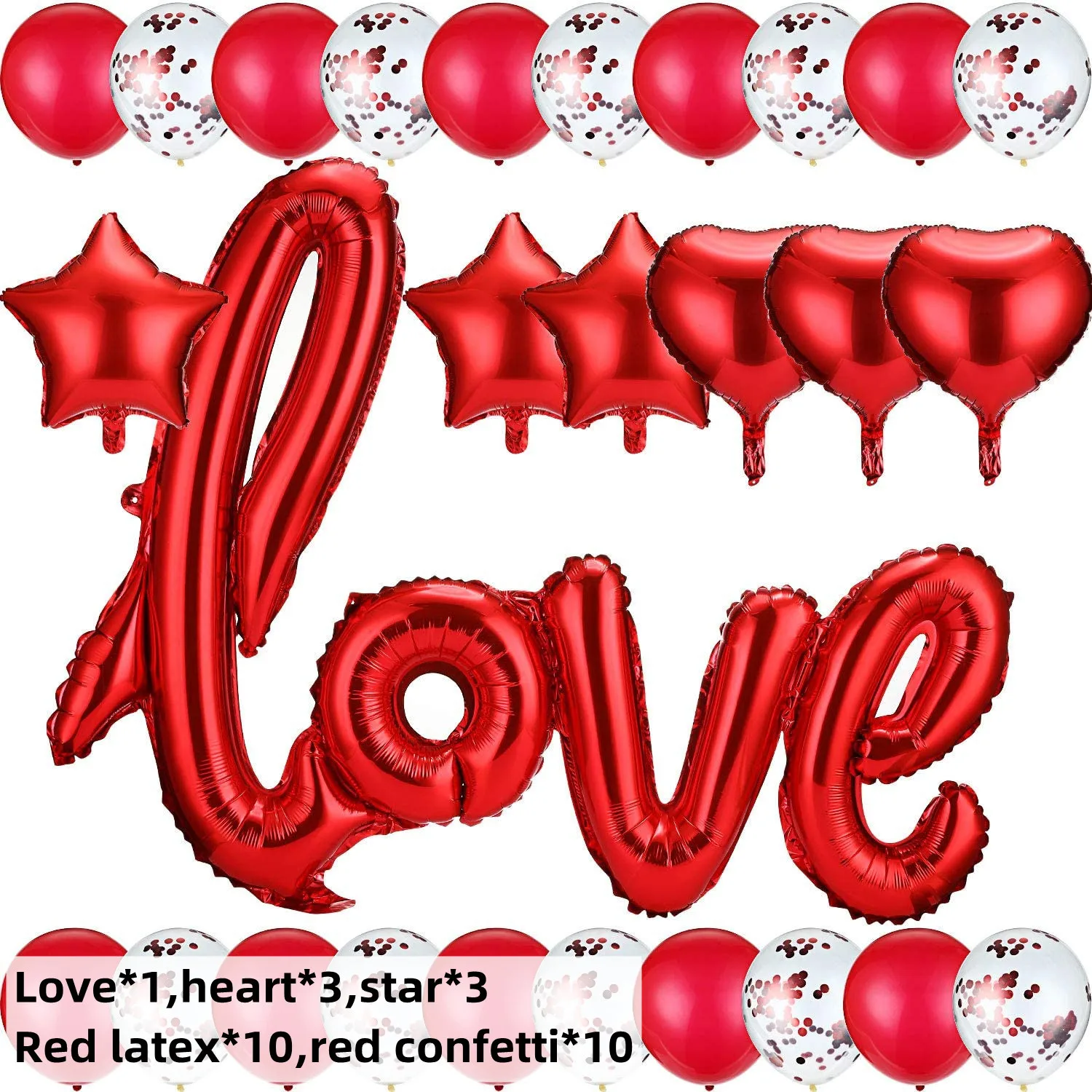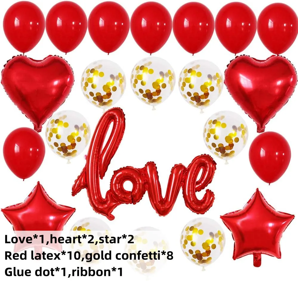 Red Love Love Pentagram Combo Aluminum Foil Latex Sequins Balloon Set Wedding Birthday Party Balloons