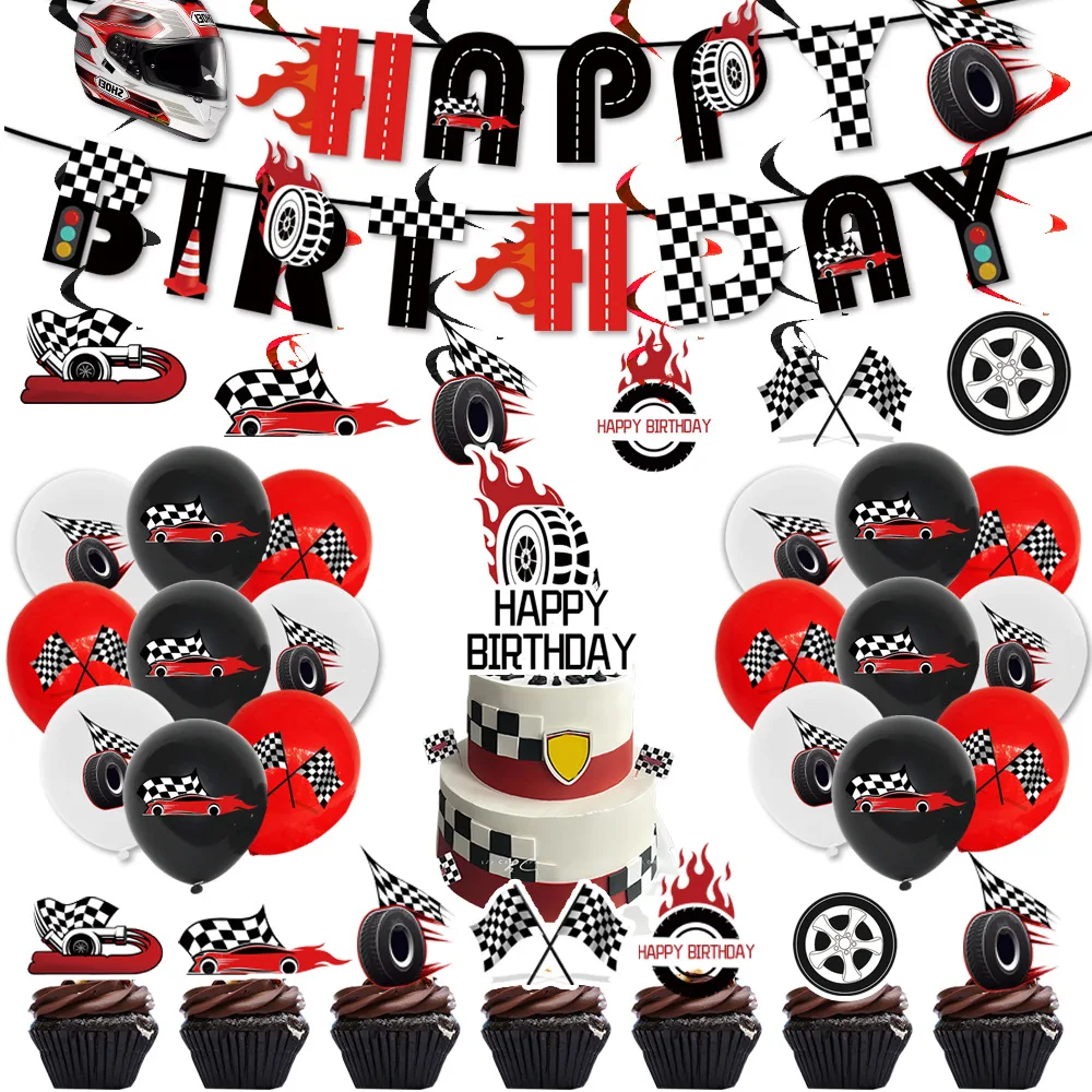Sports Car Racing Theme Birthday Party Supplies Tableware Decoration Pull Flag Balloon Party Tableware Set