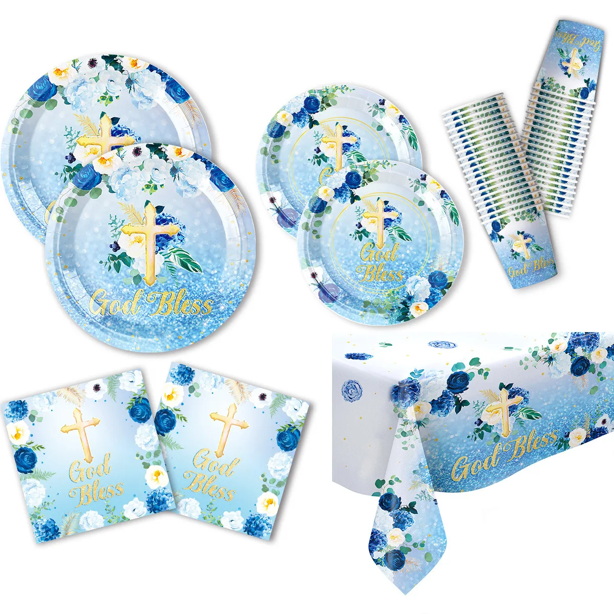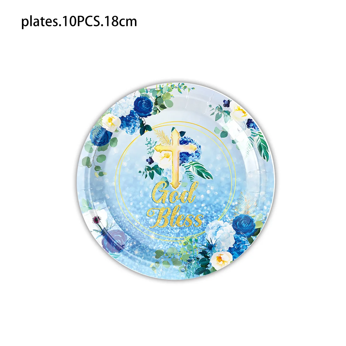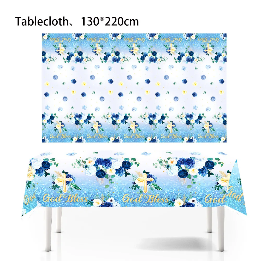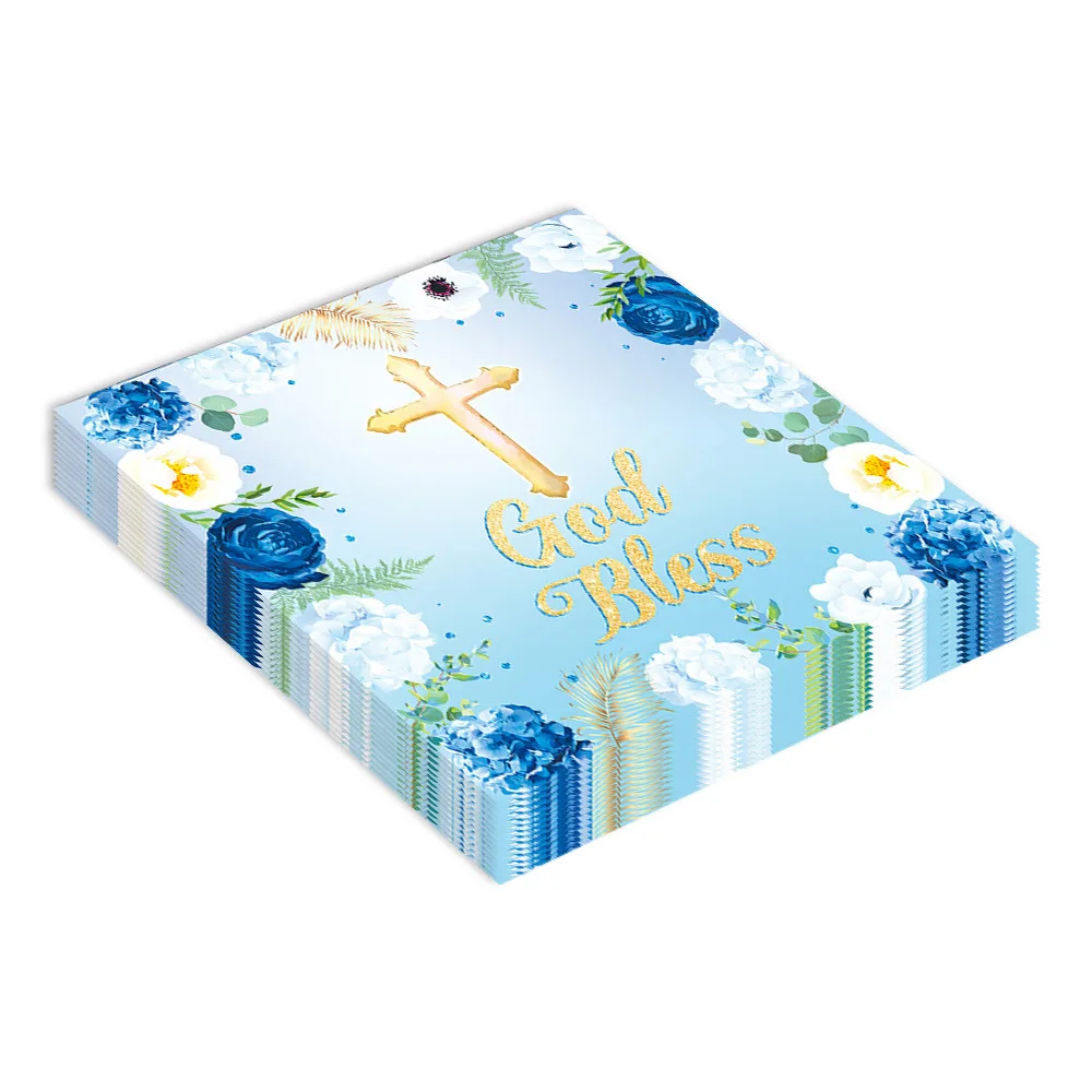 Baby Baptism Blue Flower Party Decoration Disposable Paper Plate Paper Towel Decoration Supplies