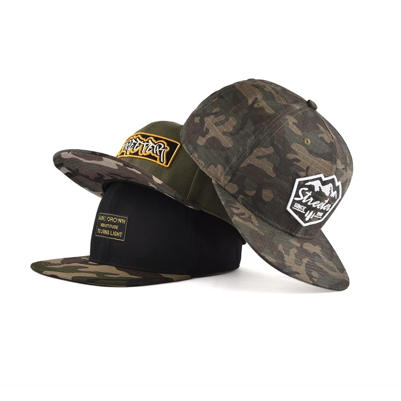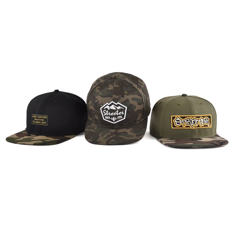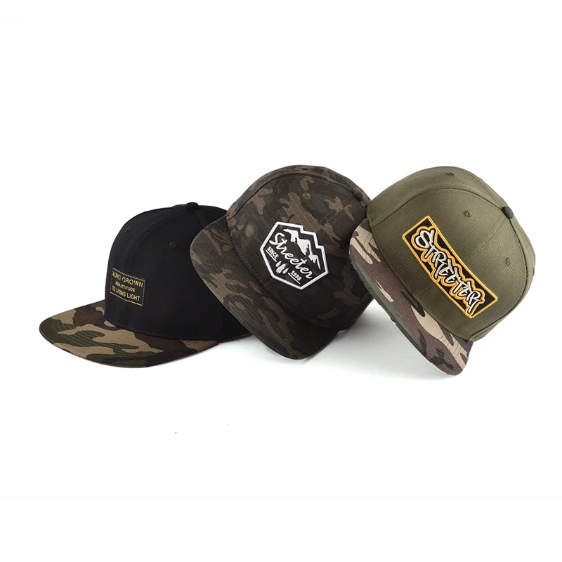 1.Product Name | Custom fashion camouflage camo brim snapback cap hat 3d puff embroidered snap back in bulk | ||