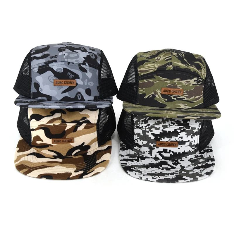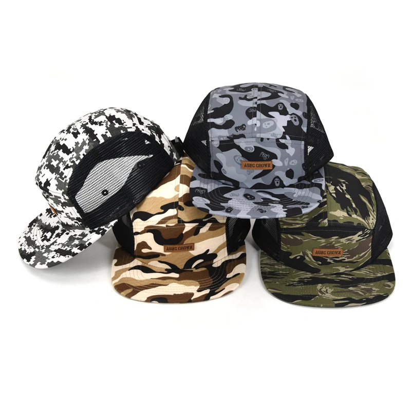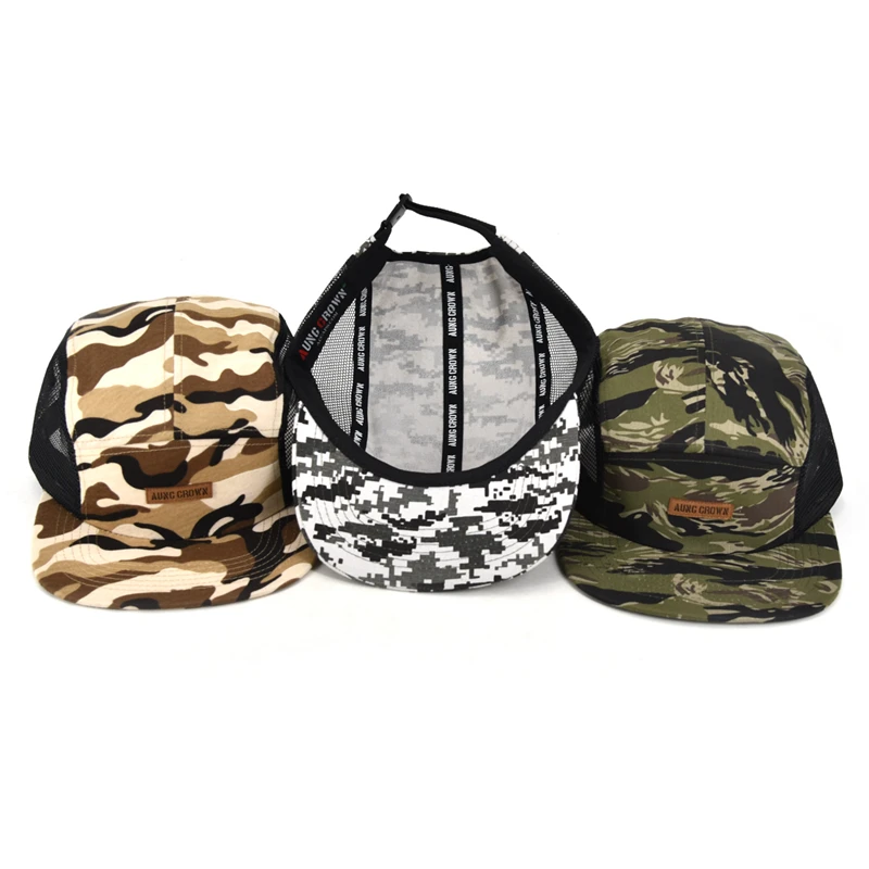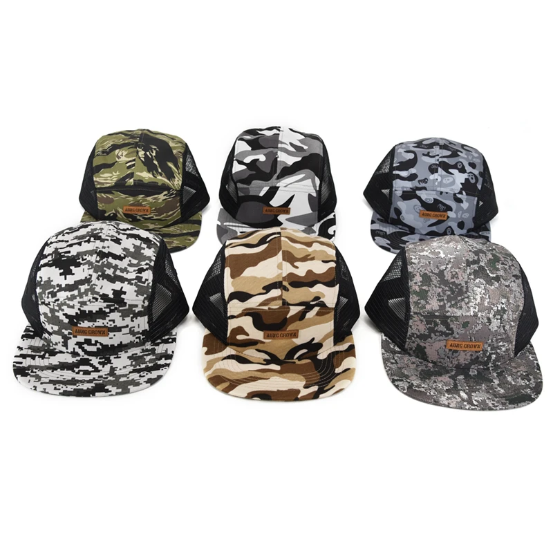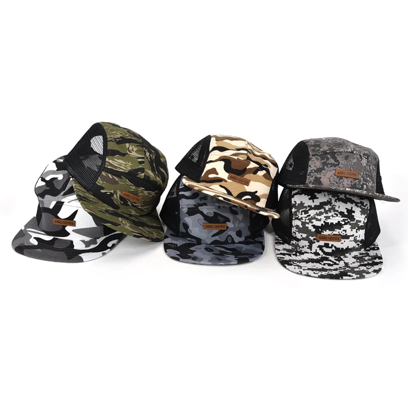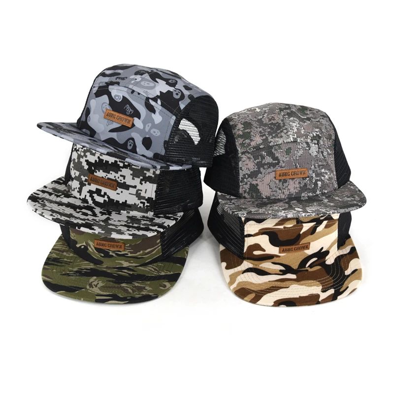1.Product Name | Low profile gorras leather patch logo five panel cap two side mesh camouflage camo 5-panel hat cap | ||
