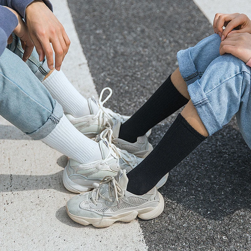 1.Item Name | New Design Plain Solid Color Socks Customization logo White Black Cotton Crew Men women Socks |