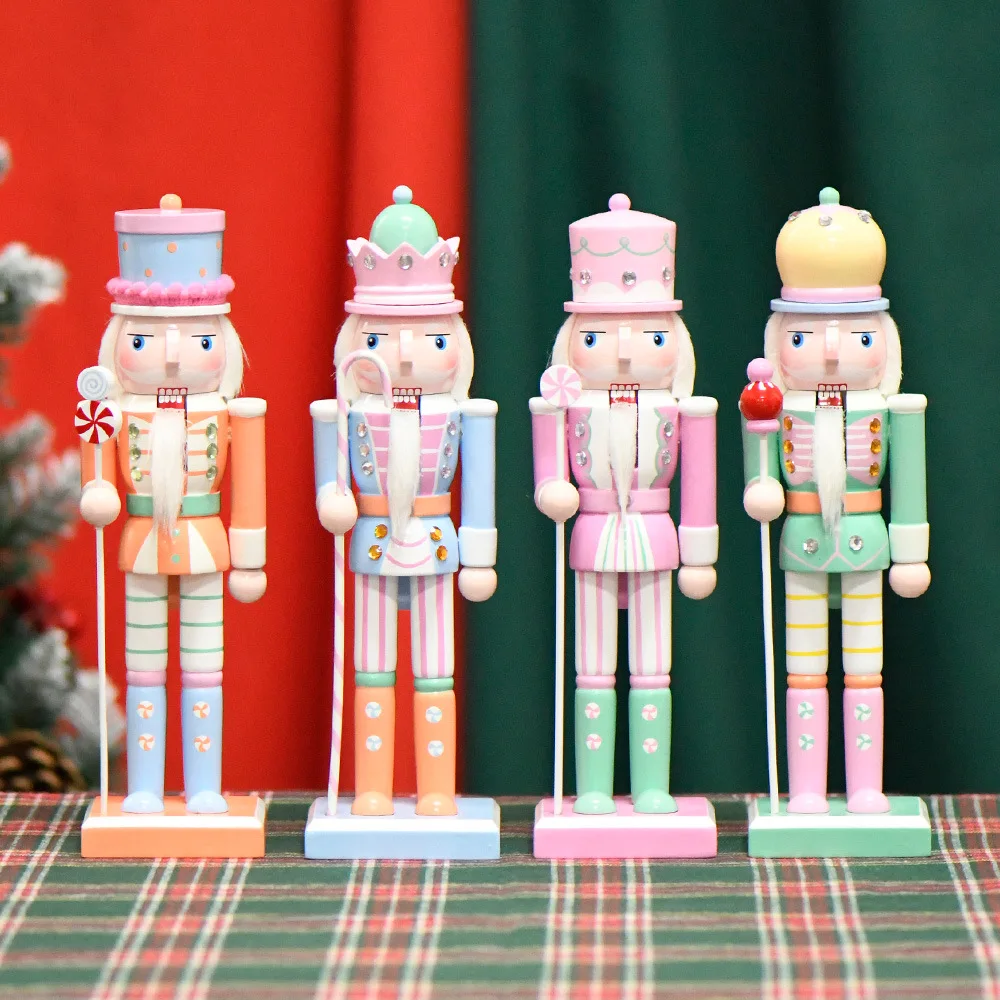 25CM Macaron Color Creative Walnut Soldier Solid Wood Decorative Ornaments Gift Crafts Christmas Ornaments Toy