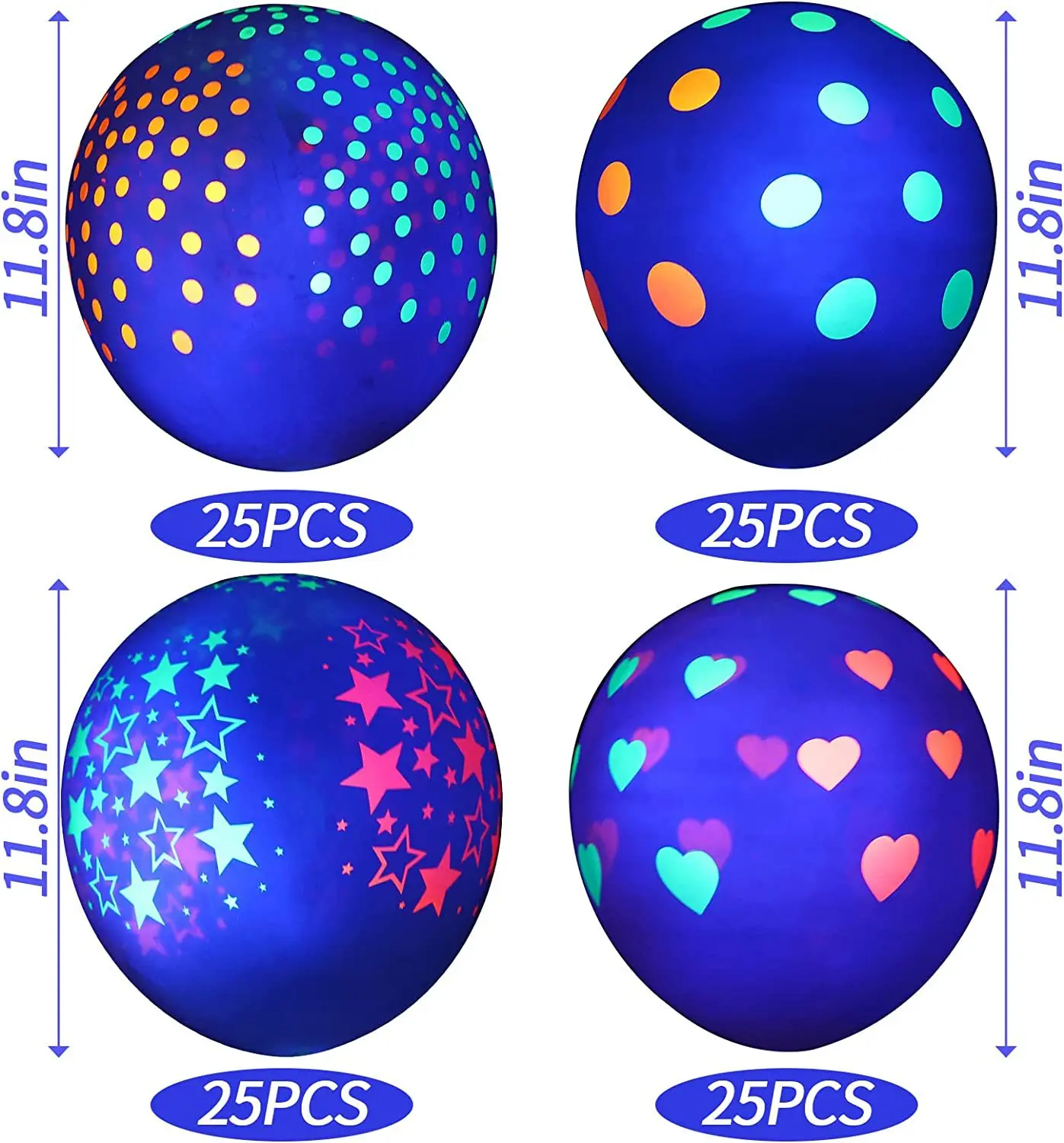 12 10 Inch Reusable UV Neon Fluorescent Balloons