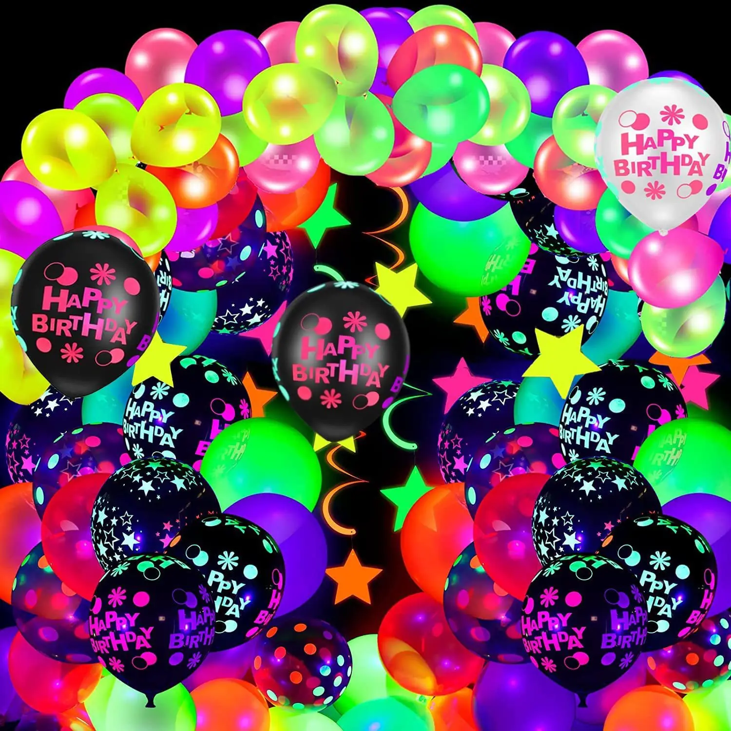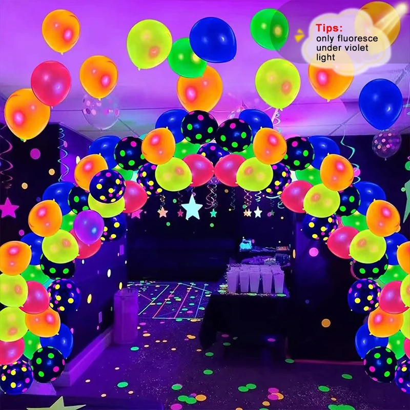 90 pcs Neon Balloons 12 10 Inch Reusable UV Neon Fluorescent Balloons Glow in the dark Black light Party for Birthday Decor