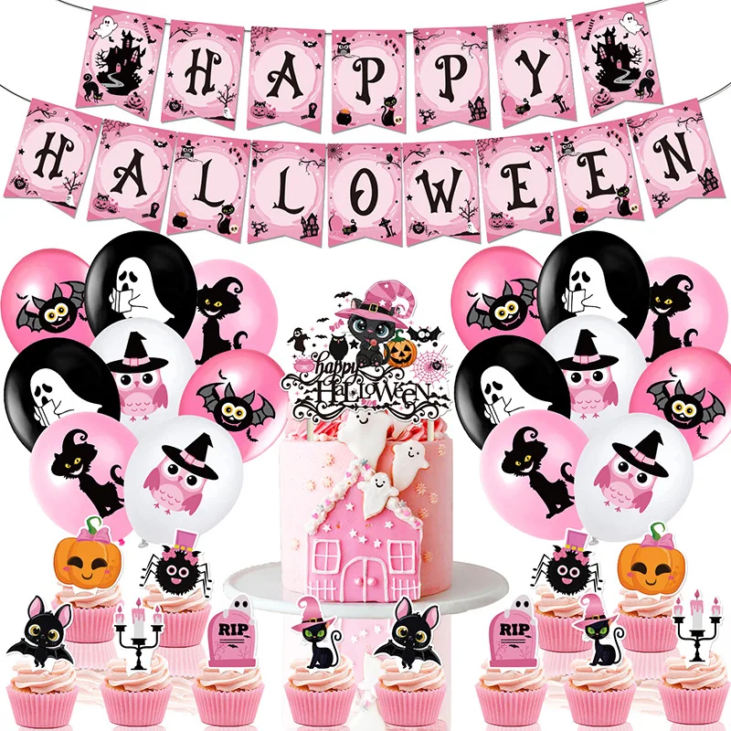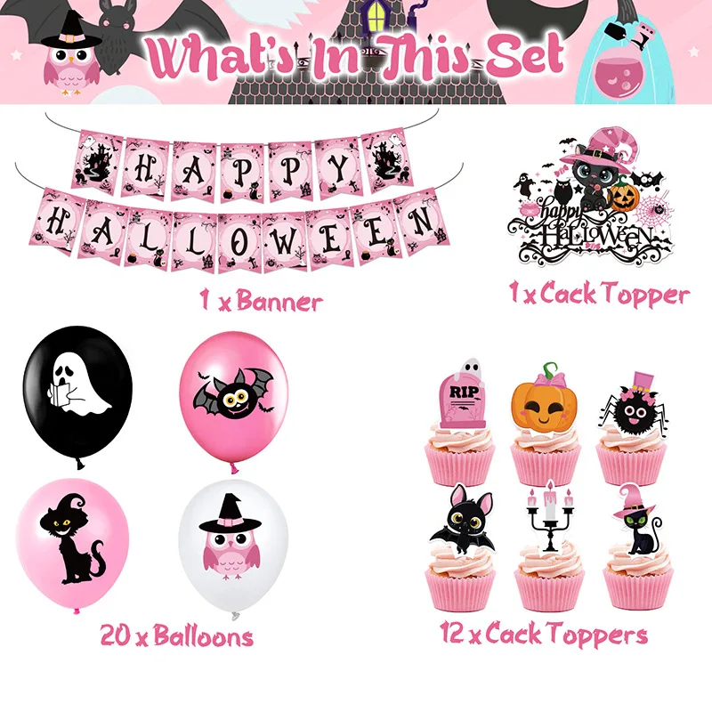 One Set Including | 30pcs: 1* Halloween flag 1* large card insertion 12* small cards 16* latex balloons: 4 models *4Coil + straw |