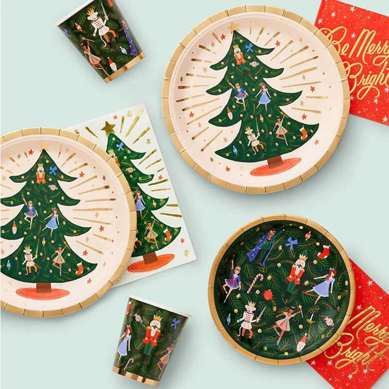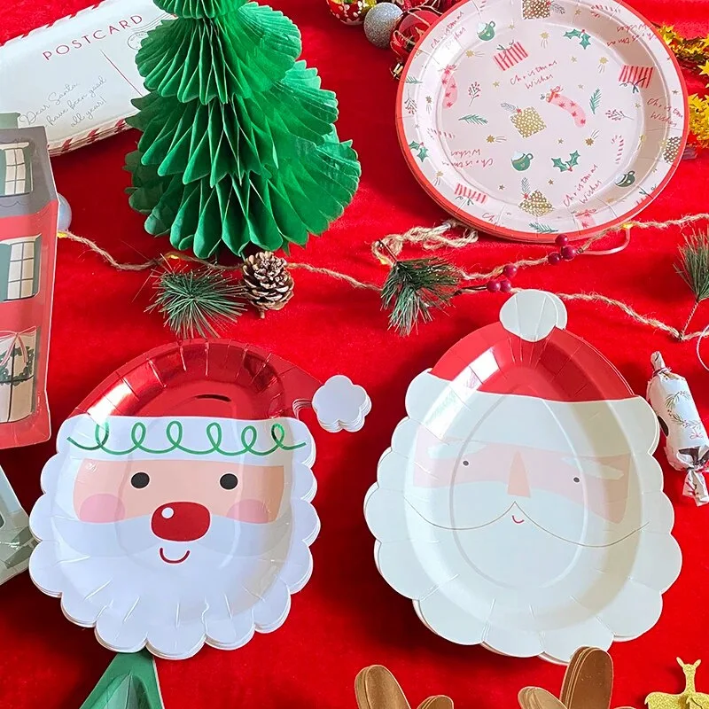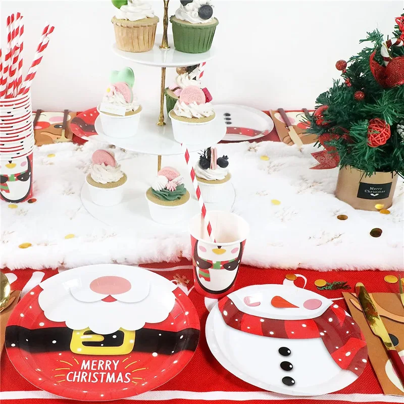 Christmas Theme Party Cutlery Set Red Plaid Paper Plate Paper Tissue Paper Cup Disposable Cutlery Set
