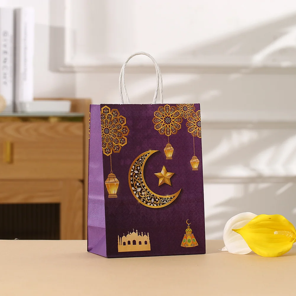 New Middle East Islamic Muslim Eid Mubarak Party Gift Bag Moon Festival Treat Paper Bag New Year Party Gift Kraft Paper Bag