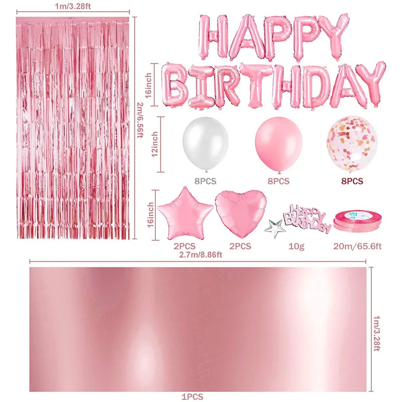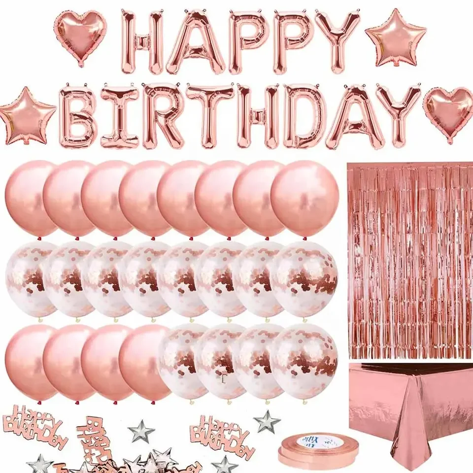 Rose Gold Black Birthday Theme Balloon Set Kit Party Supplies Happy Birthday Decoration Set