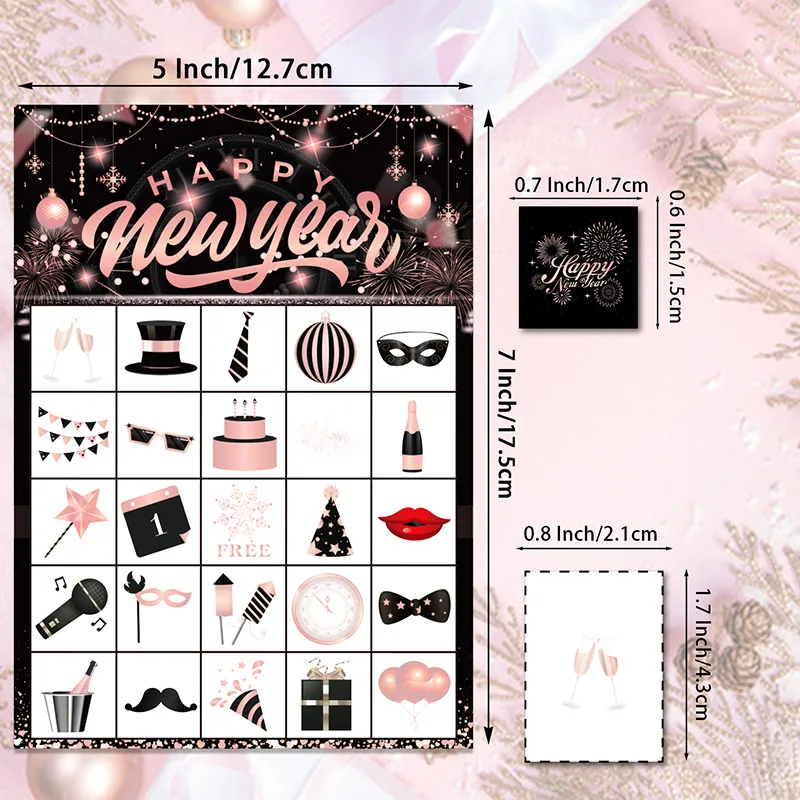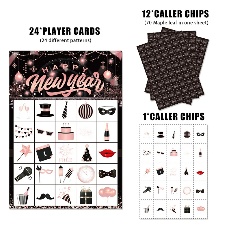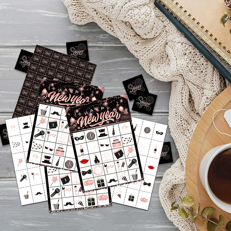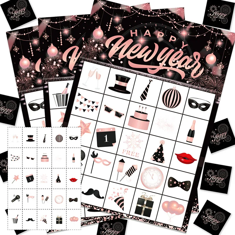 New Year Theme Happy New Year Rose Gold Bingo Game Card Party Supplies
