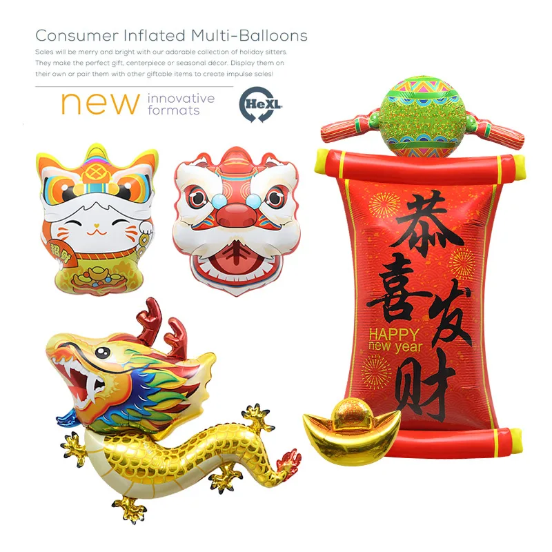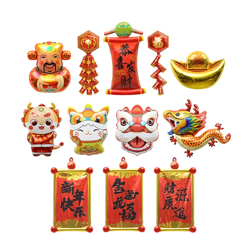 Dragon Year Decorations Chinese New Year's Party Photo Arrangement Toy Balloon Couplet God of Wealth Yuan Bao Long Balloons