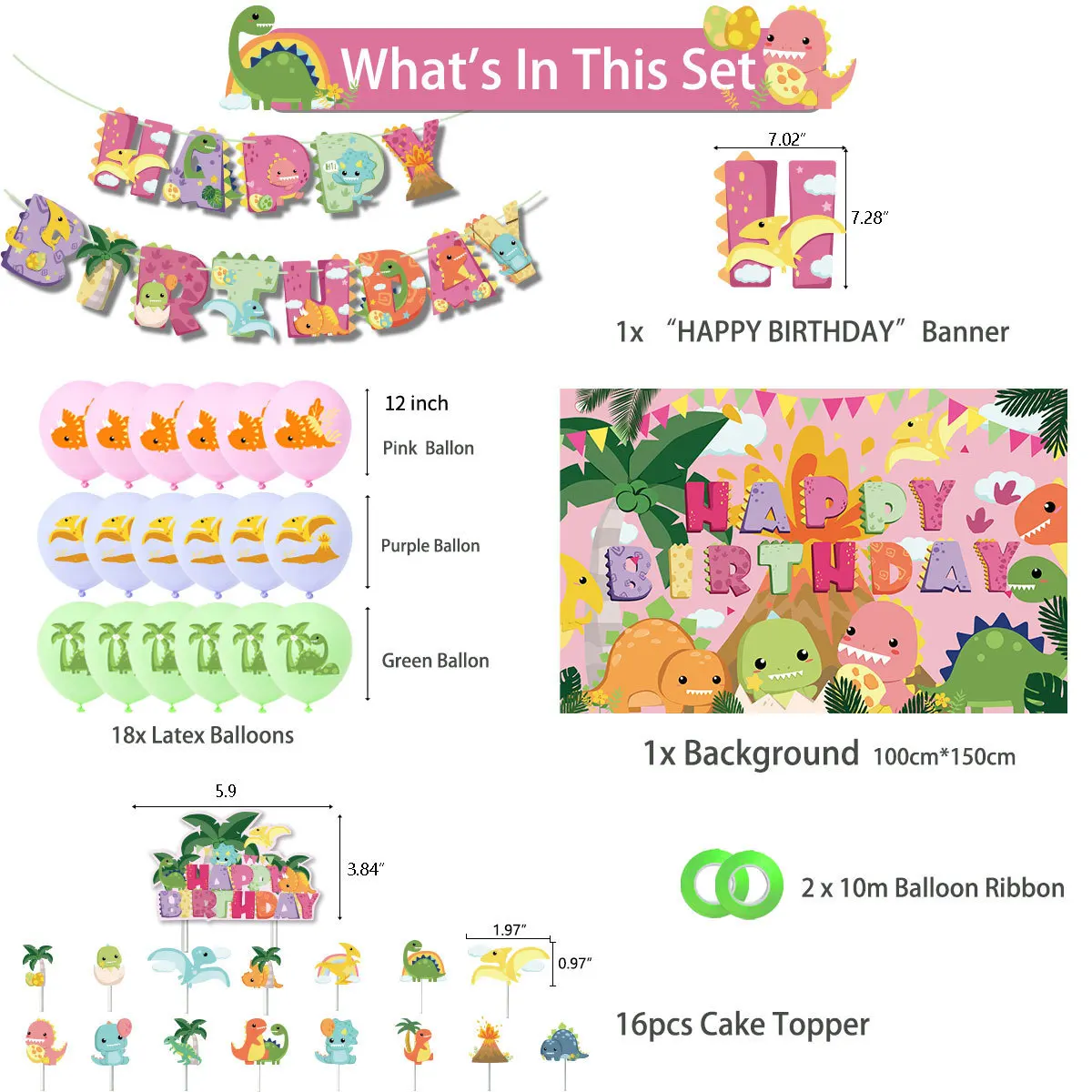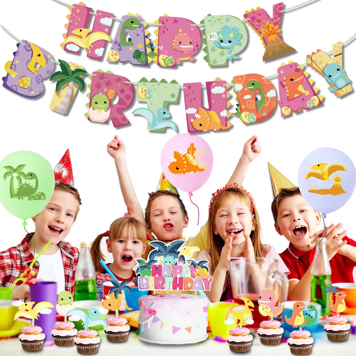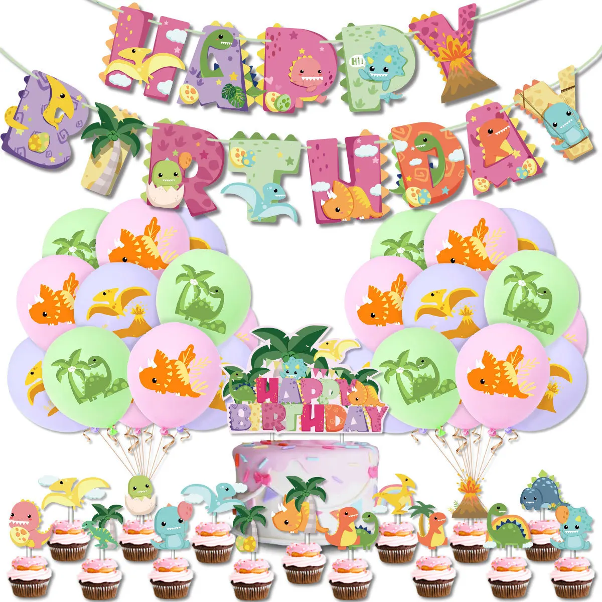 Pink Dinosaur Birthday Party Balloons Banner Cake Topper Jurassic World Dinosaur Girl Birthday Baby Shower Party Decorations