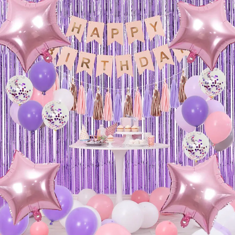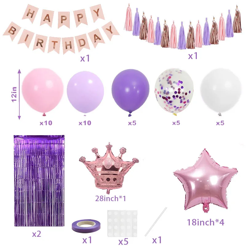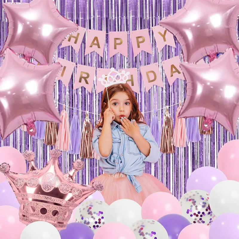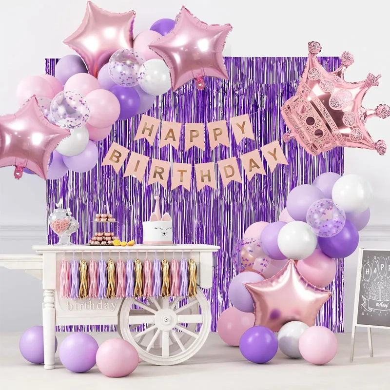Girl pink purple birthday party Balloon set