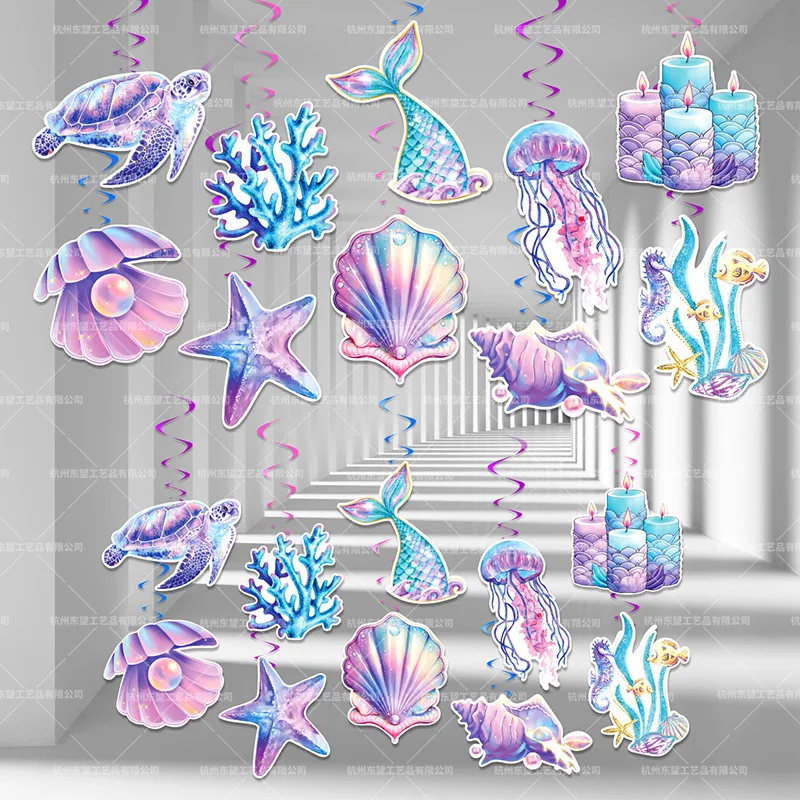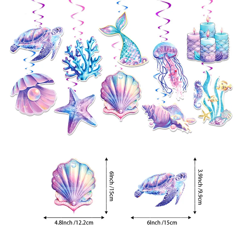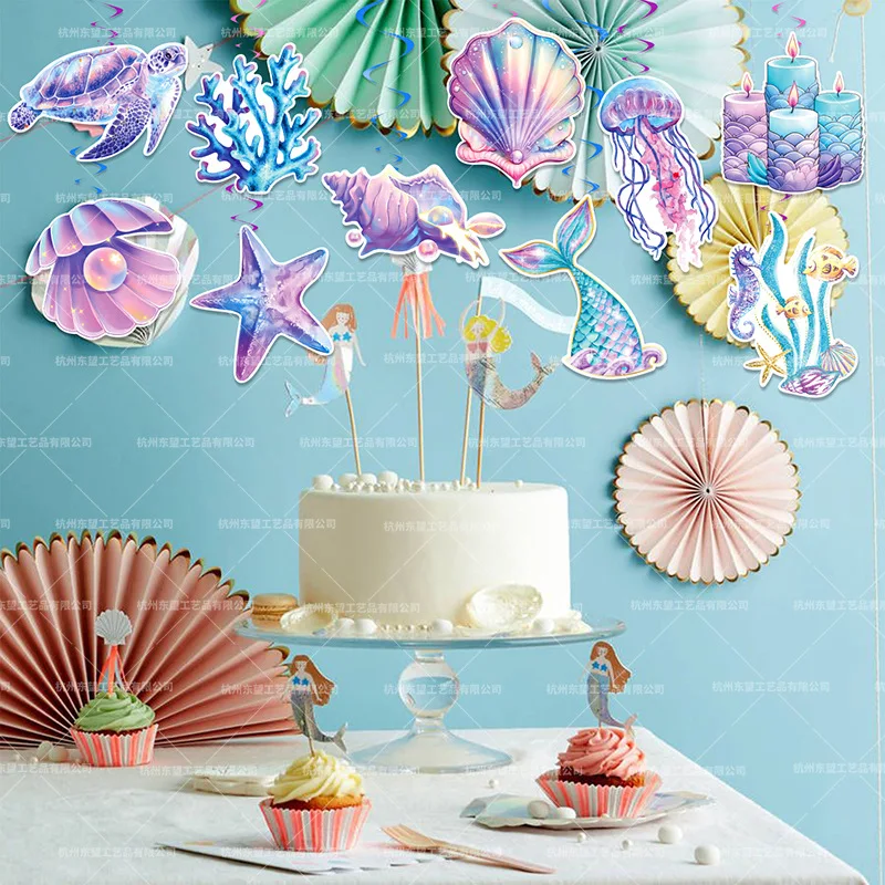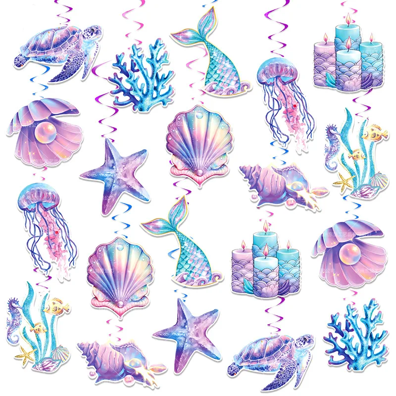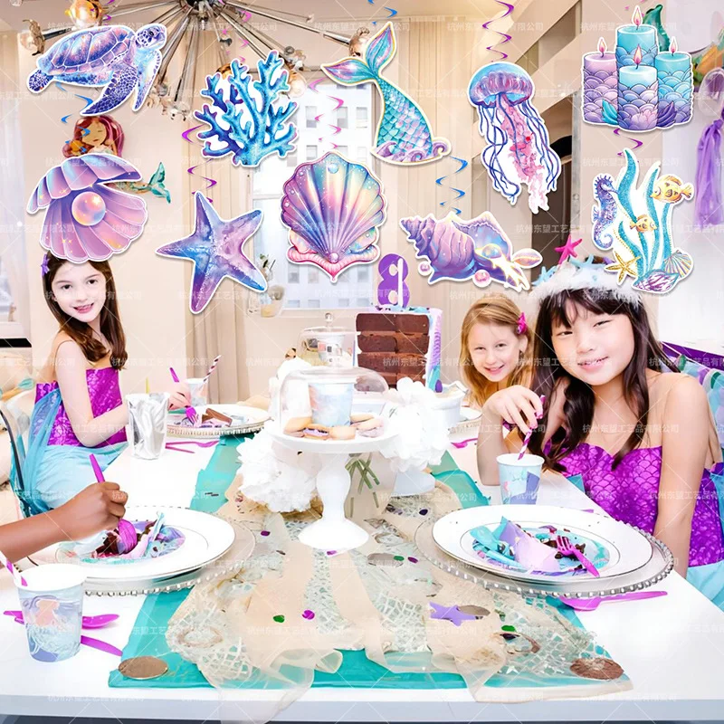 New mermaid theme pink scales starfish shell sling card spiral sling set birthday party decorations