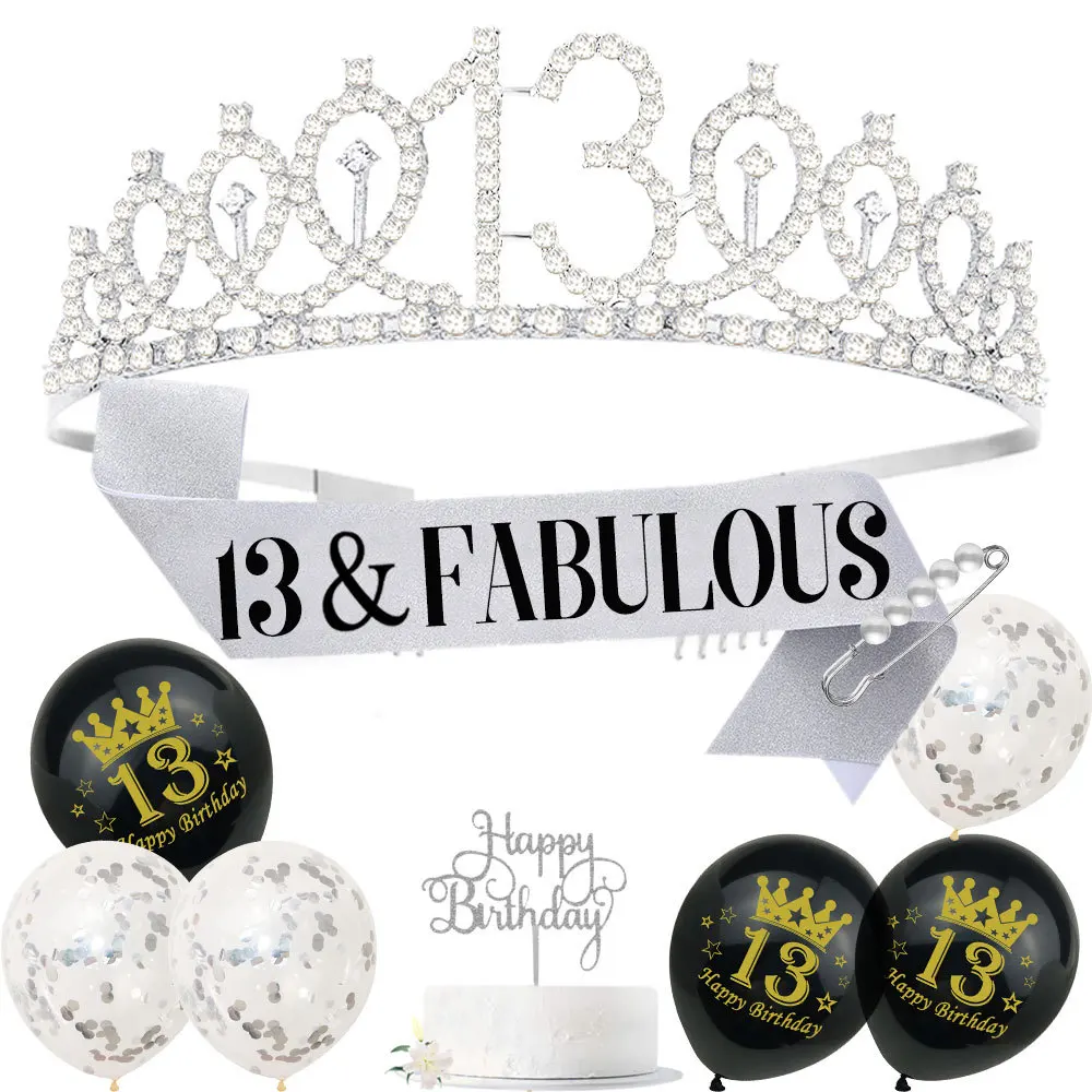 Silvery Birthday Crown Shoulder Strap Set