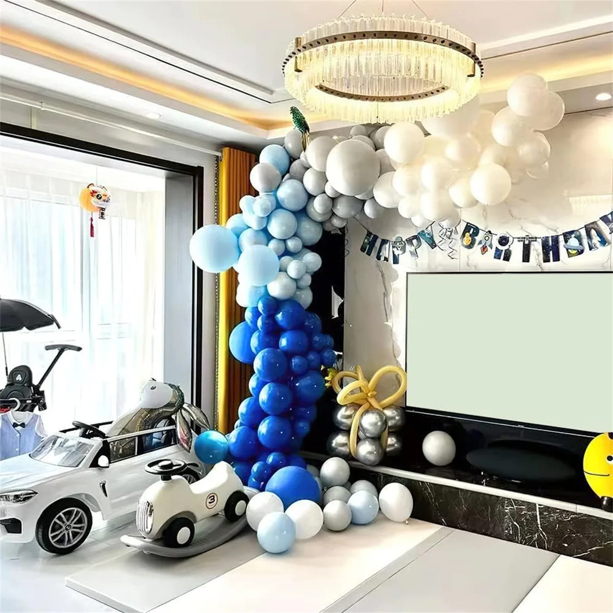 Royal Blue White Balloon Set Birthday Blue Theme Scene Decoration Mall Event Decoration Balloon Chain