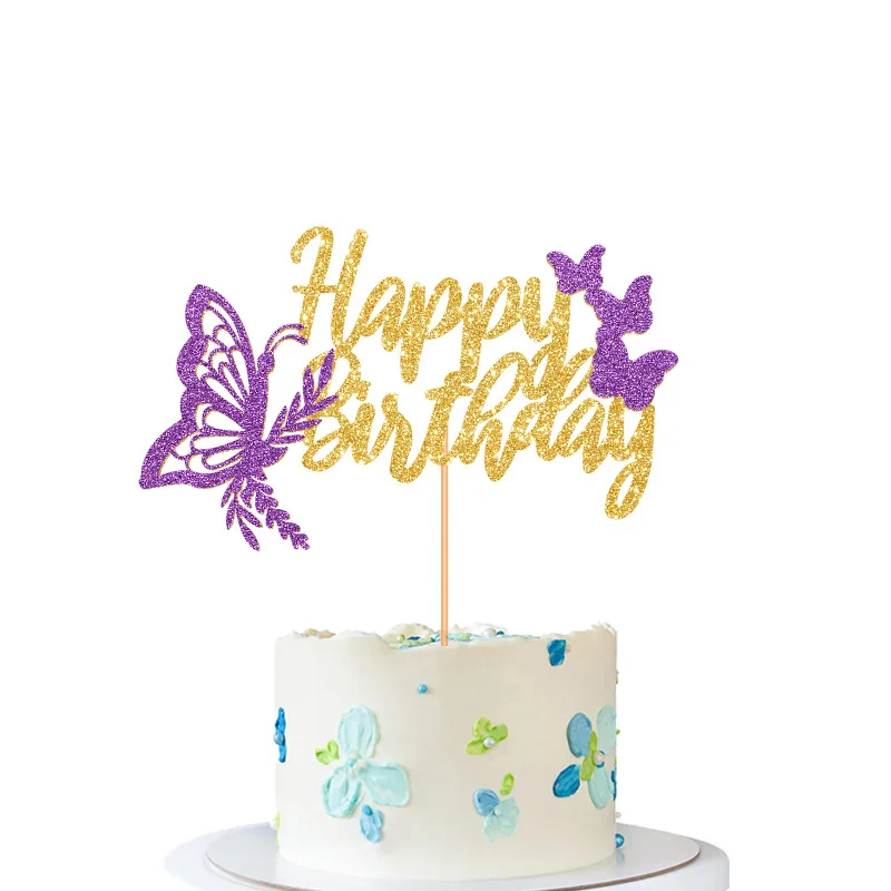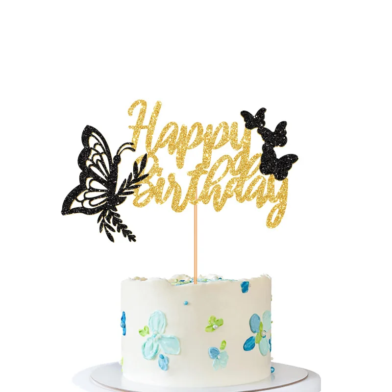 Happy Birthday Butterfly Cake Decoration Card Birthday Party Cake Sticker Wholesale